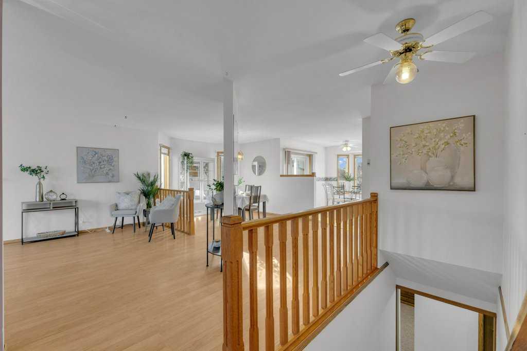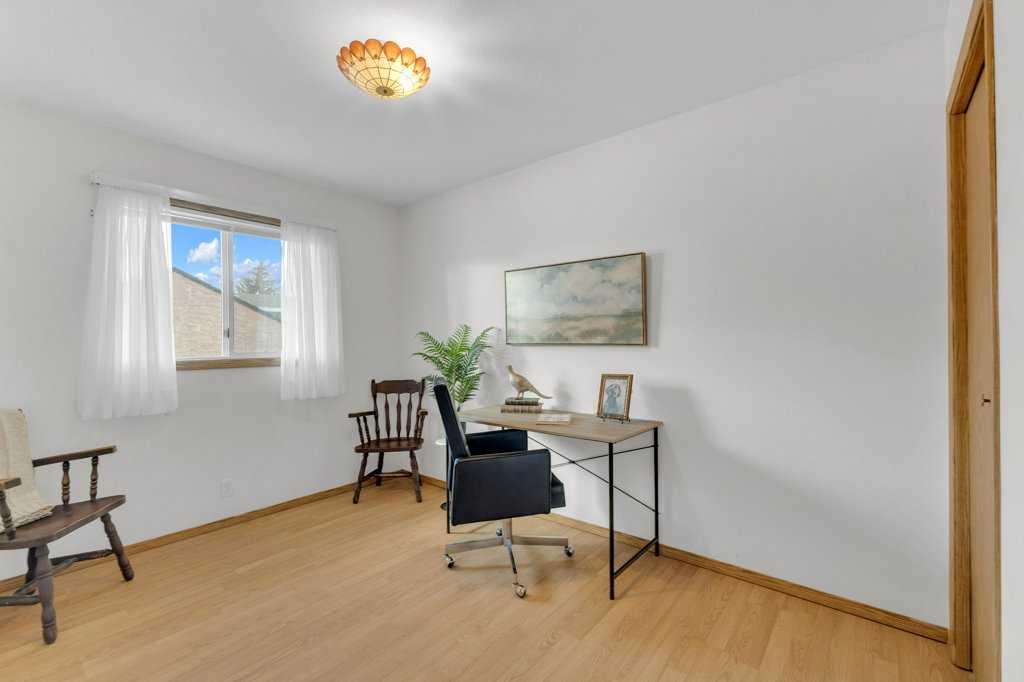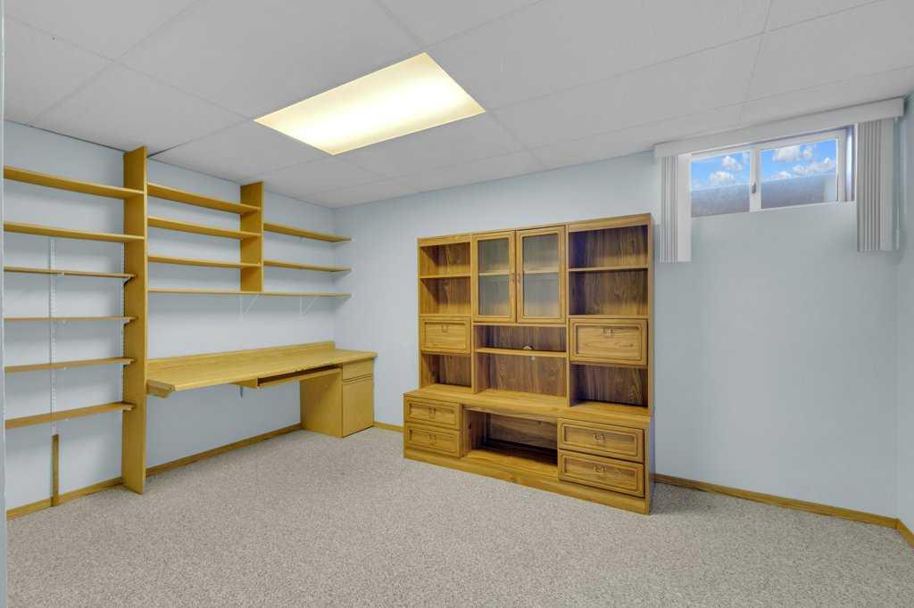 The main floor features a comfortable primary bedroom with a nicely sized ensuite, a second bedroom, a full 4-piece main bath, and a generous rear entry with laundry and access to the backyard. Downstairs, a large family room provides flexible space for movie nights or children’s play, complemented by a dedicated office area for work or study. Two additional bedrooms, another full 4-piece bathroom, and the utility room complete the lower level.