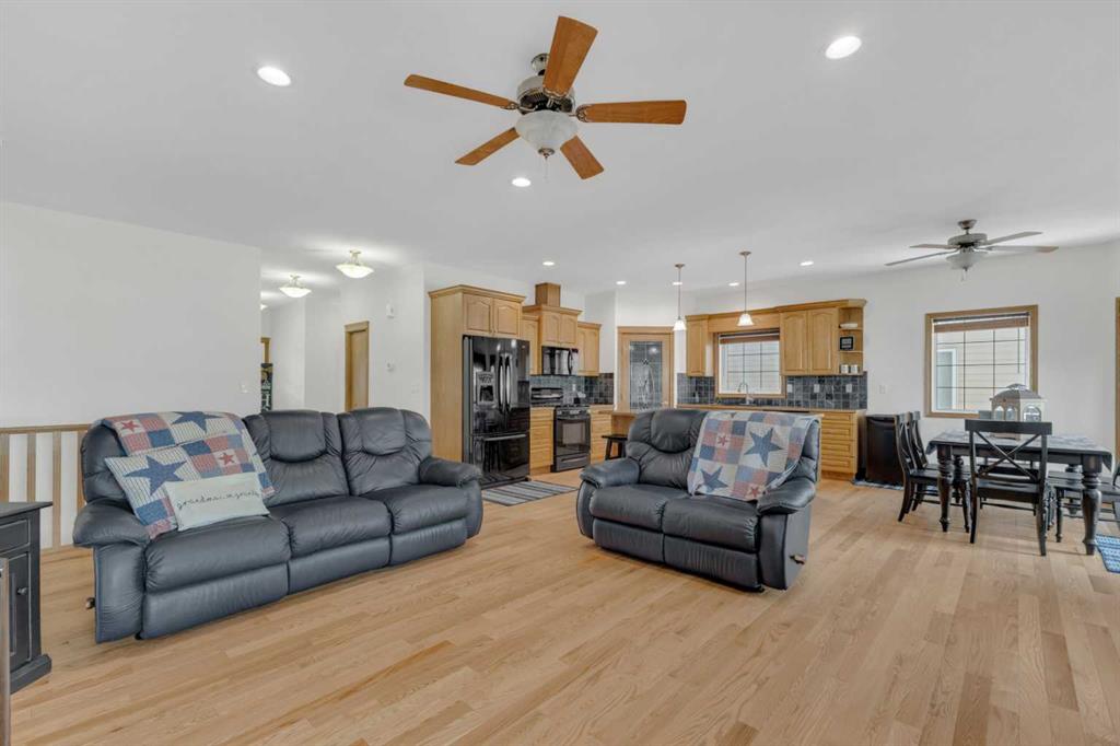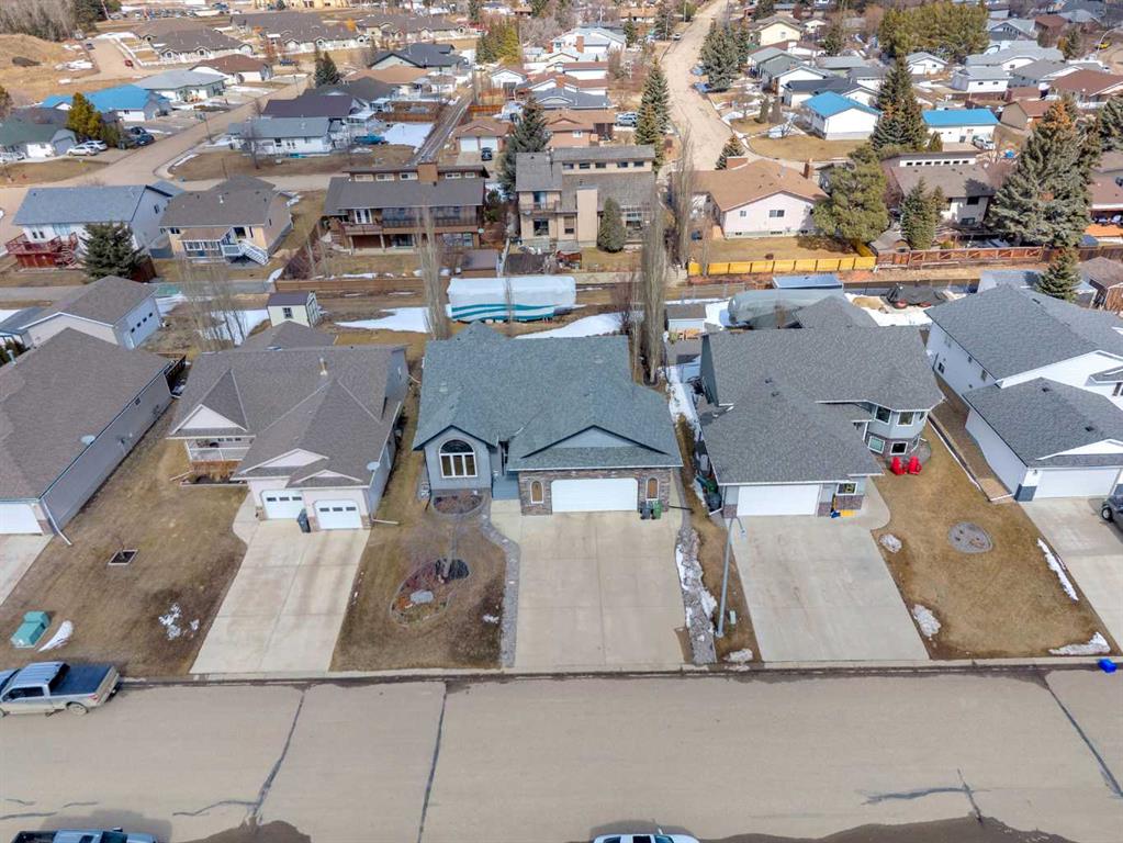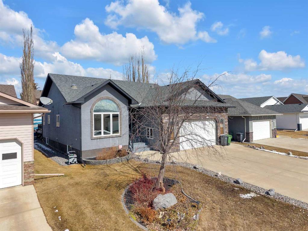 Immaculate 1-owner custom bungalow offering the perfect blend of space, comfort, and low-maintenance living. Featuring fresh paint, stunning hardwood floors, triple pane windows, and hot water on demand, this home is truly move-in ready. The bright open-concept main floor showcases generous living spaces, 3 bedrooms including a spacious primary retreat with walk-in closet and ensuite, plus convenient main floor laundry with hidden storage. The oversized heated garage easily accommodates 2 vehicles—including a pickup—with extra room for tools and toys. Downstairs, enjoy a massive, light-filled family/games room with high ceilings, 2 additional large bedrooms, a full bath, and extensive storage throughout. Step outside to a beautifully maintained yard complete with RV parking (30-amp service), concrete curbing, perennial landscaping, low-maintenance rubber mulch, and a large rear deck with gas BBQ hookup—perfect for entertaining. This exceptionally well-cared-for home offers space, function, and lifestyle—ideal for families or those looking to enjoy main floor living without compromise located in a quiet neighborhood and only steps to walking trails.