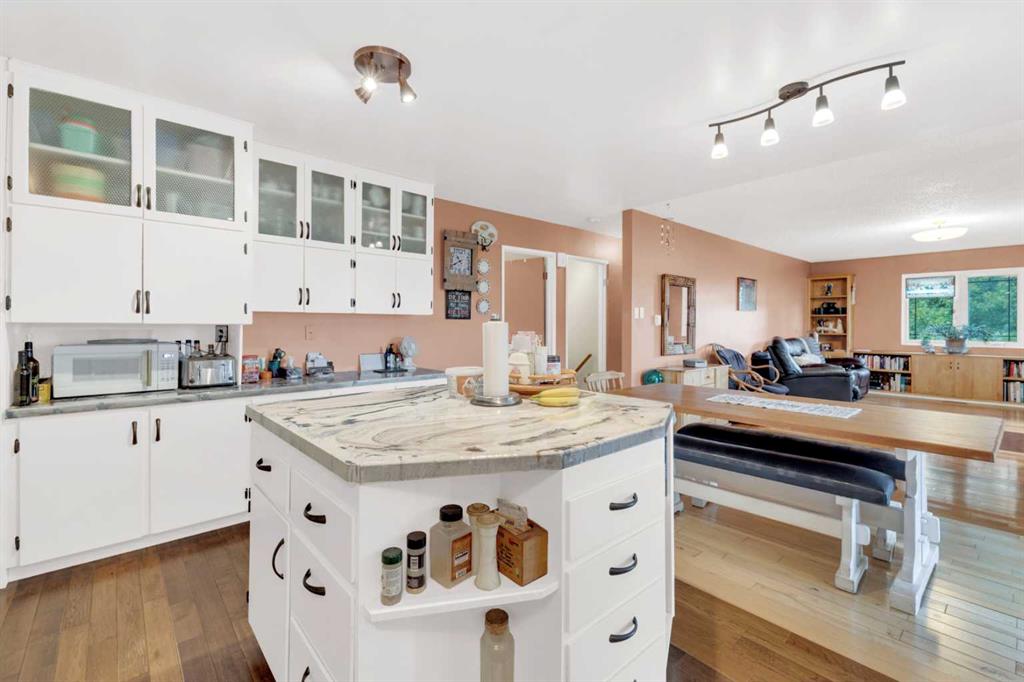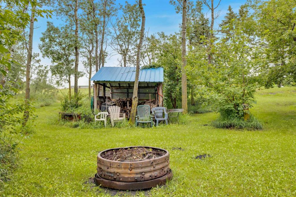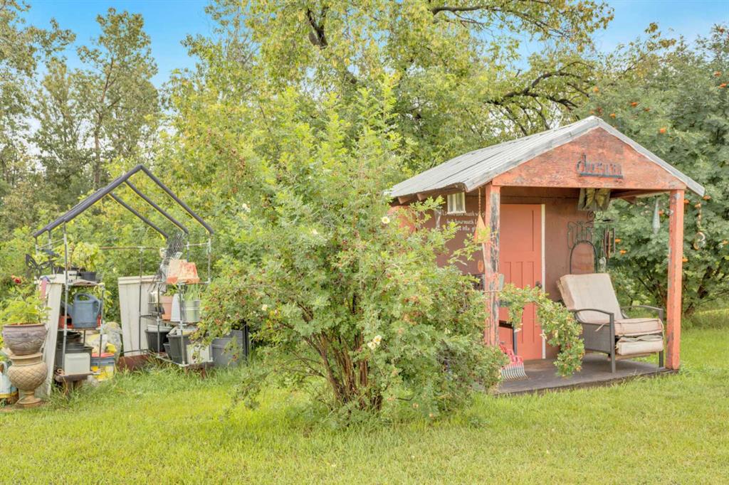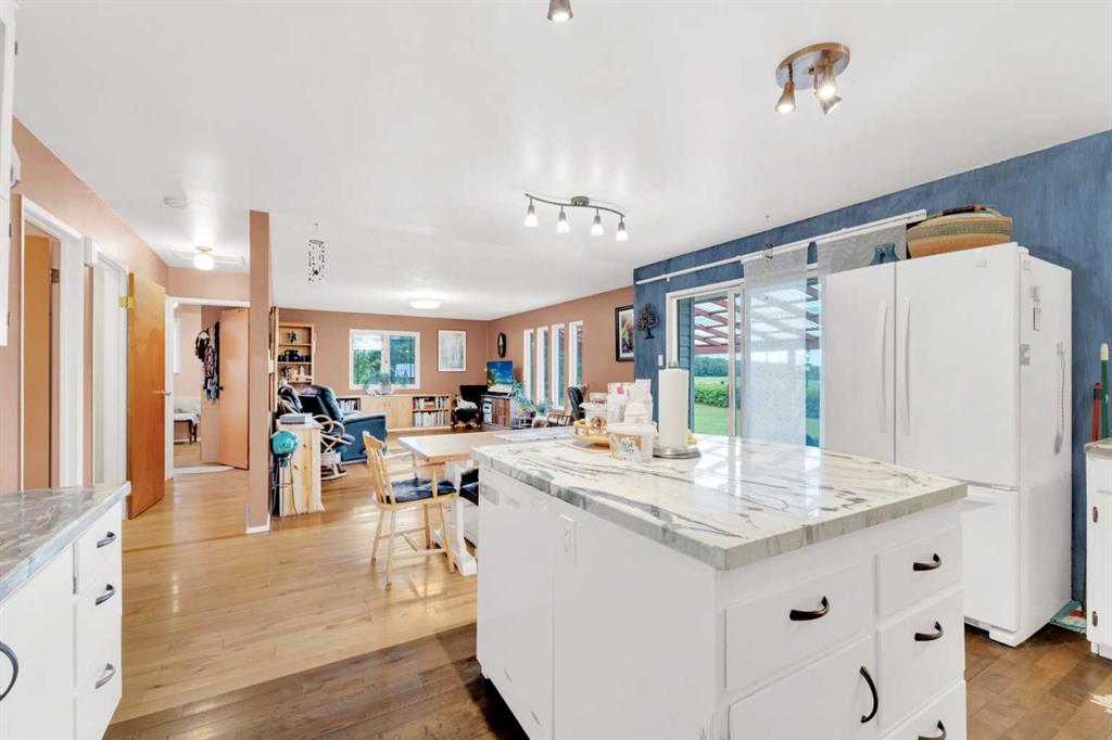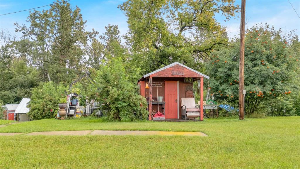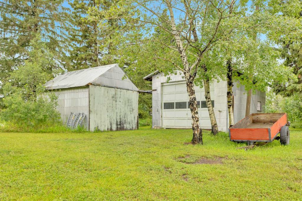 Discover this charming 3 bedroom, 2 bathroom bungalow perfectly situated on a quiet dead-end road. Enjoy the freedom of no building restrictions and the privacy of a fully fenced property complete with multiple outbuildings, water service, and 220 power. Ideal for hobby farming, animals, or anyone seeking space and tranquility. Comfortable main-floor living with functional layout and country charm throughout. A great opportunity for rural living just minutes from town conveniences! Walkout basement with an attached double car garage are a bonus. As well as in floor heat on the main floor and basement are economical and warm! Outside there are multiple kinds of fruit trees, lovely garden and walking trails.