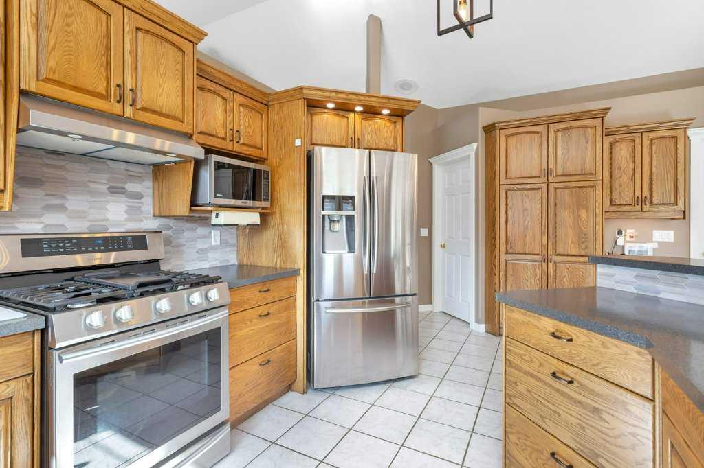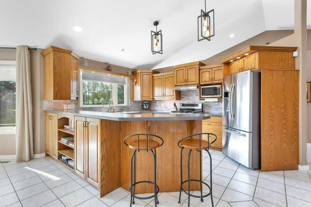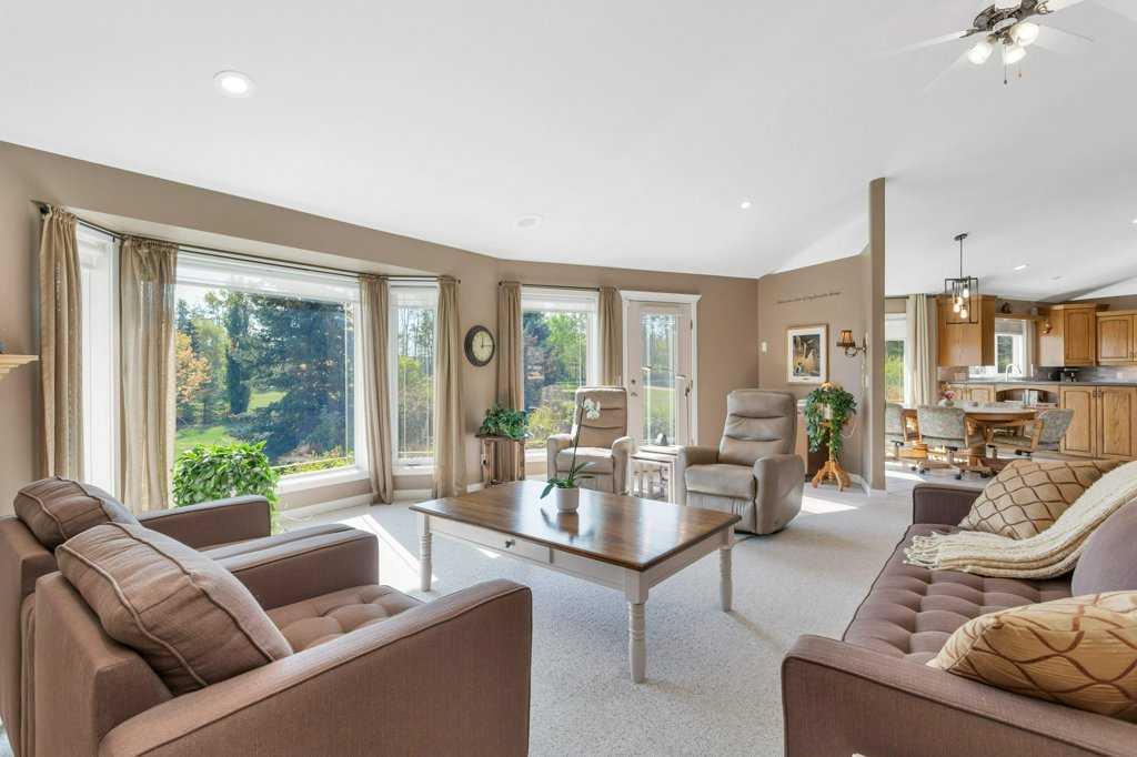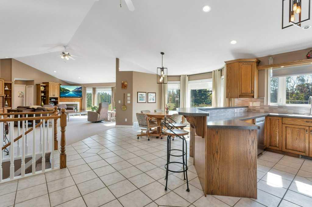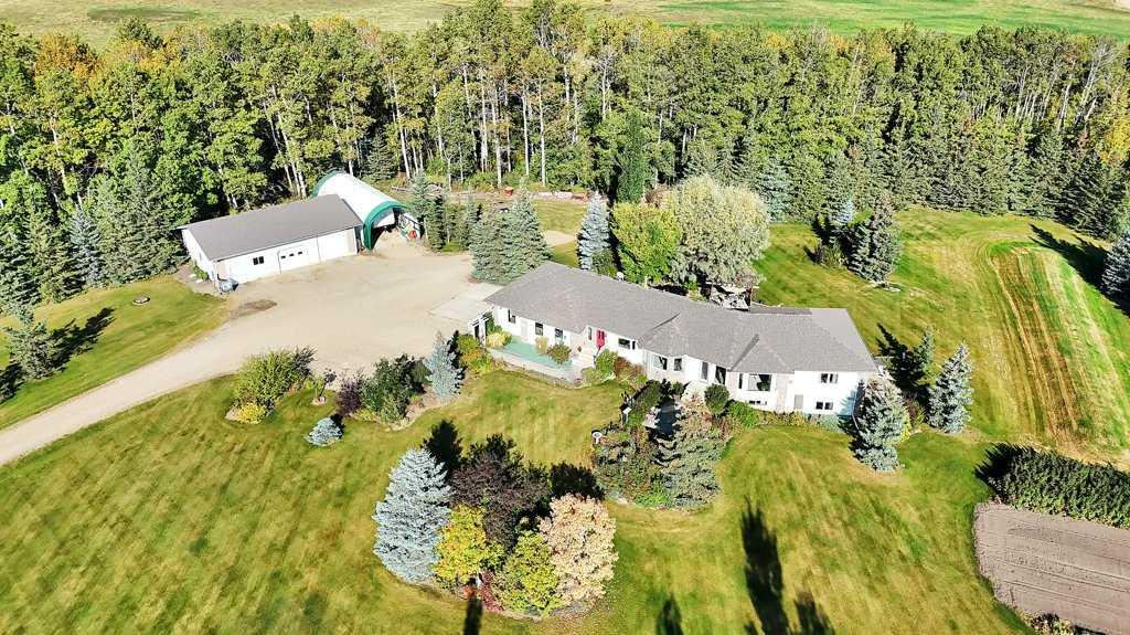 This stunning 8.62-acre property offers the best of both worlds—peaceful country living with the convenience of being only 5 minutes west of Rimbey. The 1,945 sq. ft. bungalow is designed with both comfort and practicality in mind, featuring an open and bright main floor accented by elegant built-ins, new custom window shades, and a cozy gas fireplace. The kitchen, with an abundance of counter tops, gas stove, and large walk-in pantry, which seamlessly flows into the dining area, making it ideal for family gatherings or entertaining. The main level offers two spacious bedrooms, two bathrooms, and thoughtful extras like a large laundry and mudroom. The fully developed basement adds two more bedrooms, a bathroom, a generous rec room, and ample storage options including a cold room and utility space. Heated by an efficient boiler system providing both in-floor and forced-air comfort, this home ensures warmth without the need for a traditional furnace.