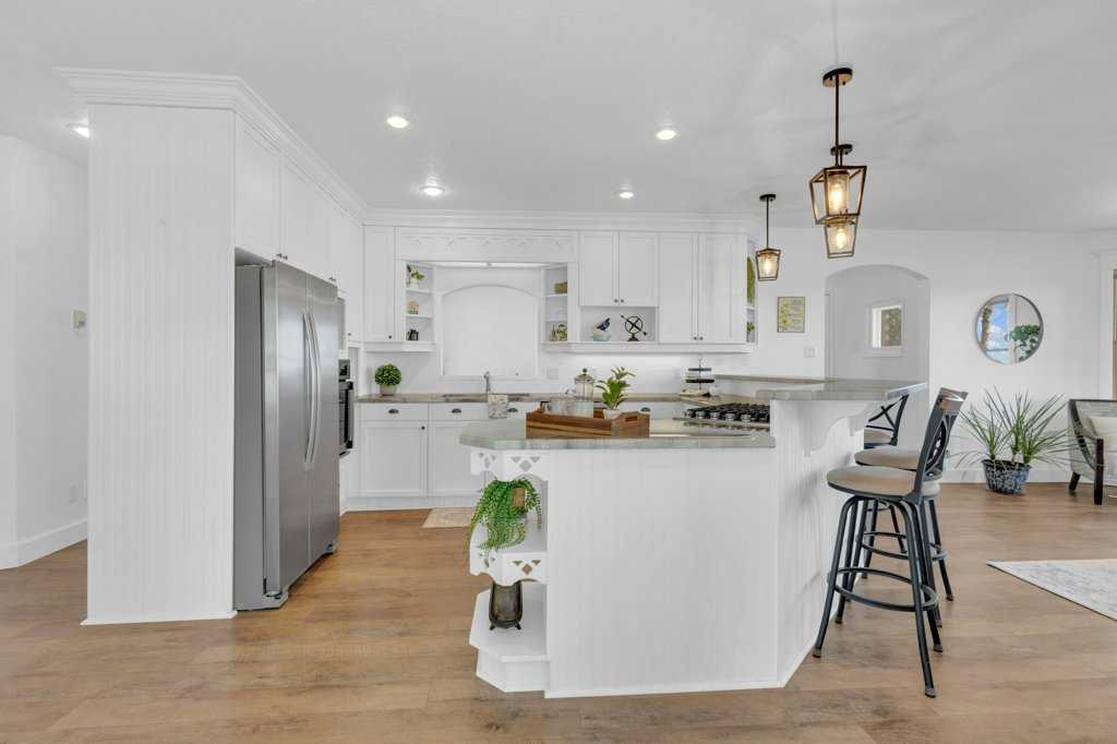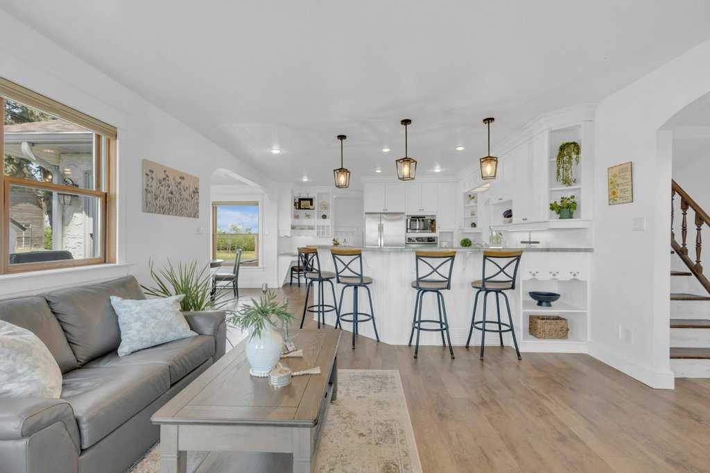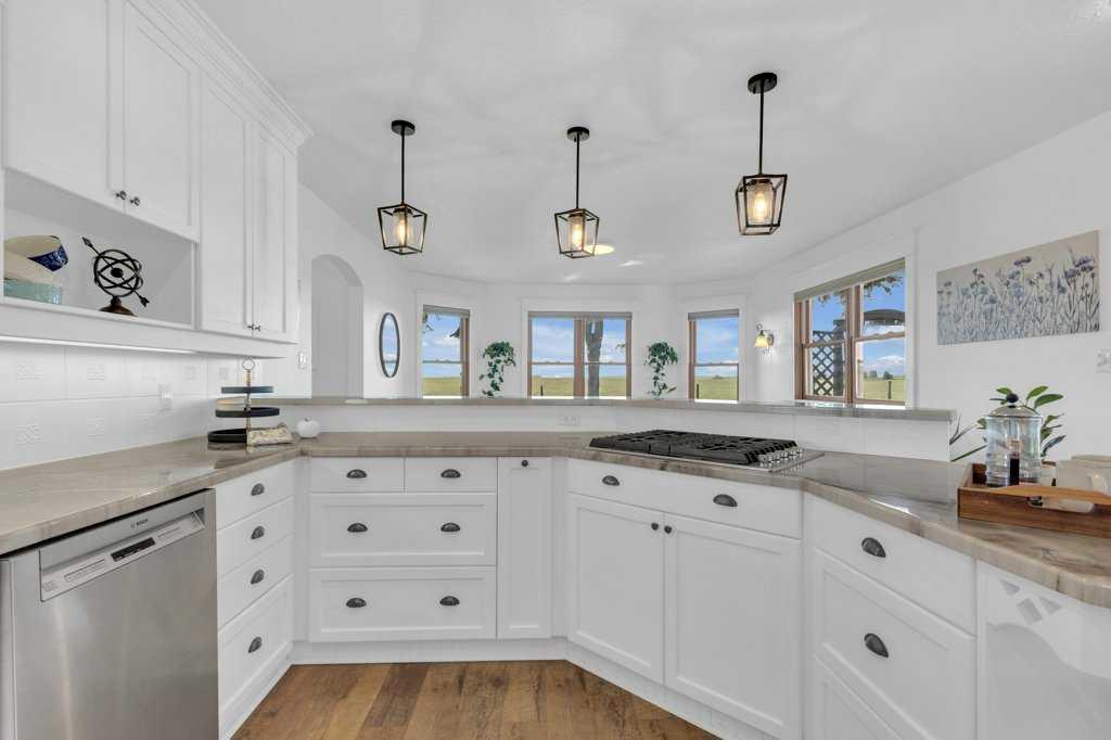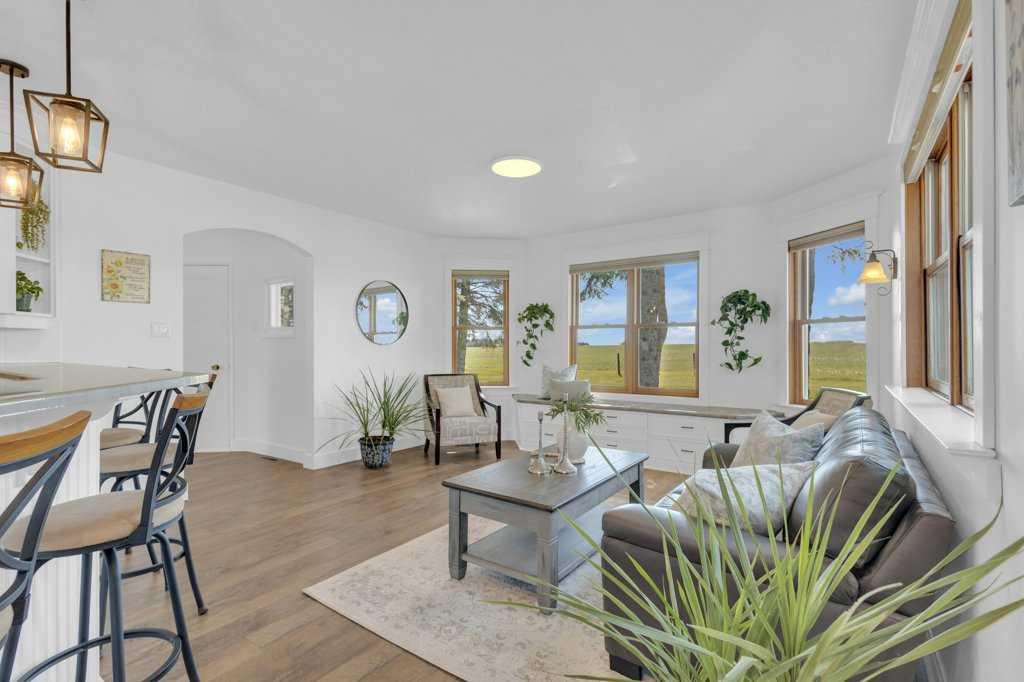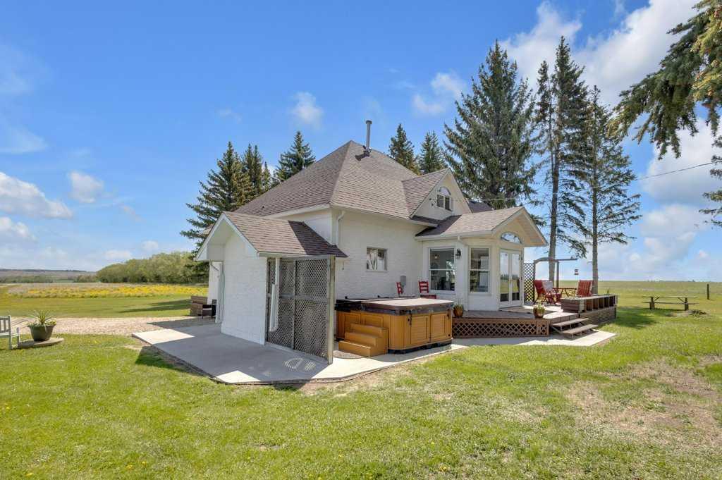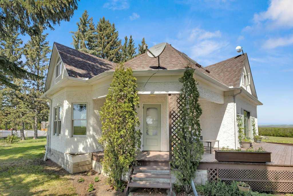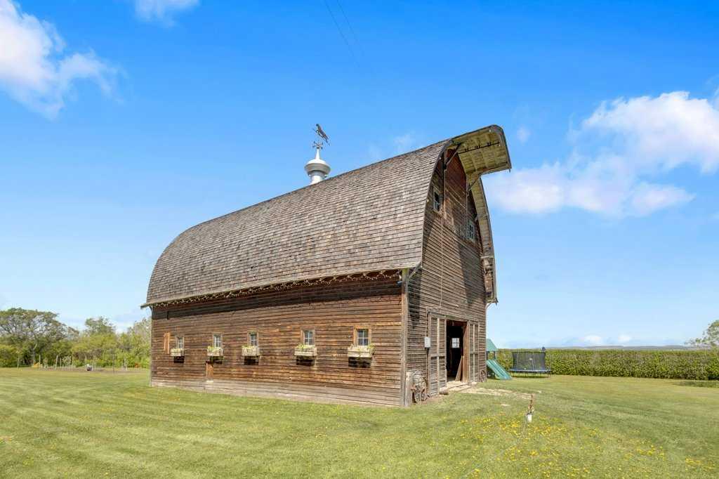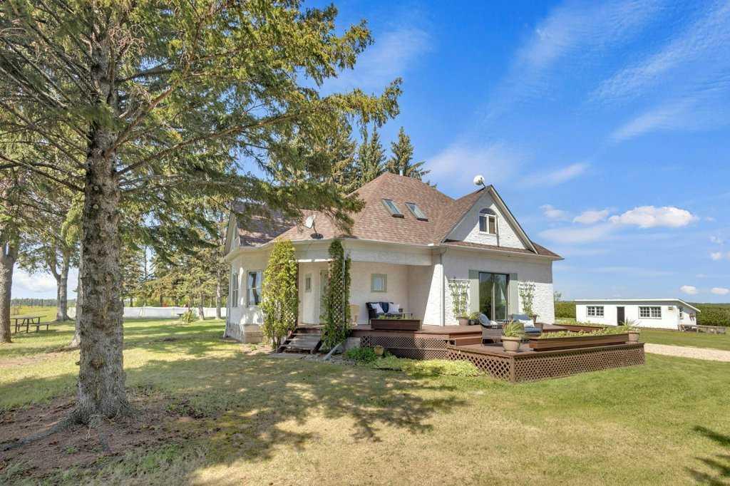 Welcome to a rare gem nestled just 2 minutes north of Rimbey — a beautifully preserved and thoughtfully updated 1909 farmhouse sitting on an expansive 19.56-acre property that effortlessly blends timeless charm with modern comfort. Step into a home where history meets contemporary living. This charming farmhouse features three spacious bedrooms upstairs and two and a half bathrooms, providing plenty of comfort and convenience for the whole family. The kitchen has been tastefully updated with stylish finishes and includes, stunning epoxy countertops, and brand-new appliances installed in 2024. Warmth and durability are ensured with the new flooring added in 2022, while in-floor heating in the basement keeps the home cozy during colder months. The home has been extensively updated throughout the years, with most recently a new hot water tank installed in April 2025, complemented by a second tank added in 2020. Throughout the home, you'll find abundant storage space, making it as practical as it is inviting. Outdoor enthusiasts and hobby farm lovers will find everything they need on this serene rural property. A large garden offers the perfect space to grow your own fresh produce, while a charming chicken coop provides daily farm-fresh eggs. The original hip roof barn stands as a proud and rare feature, full of character and still structurally sound. Adding to its uniqueness, the barn loft has been transformed into a private pickleball court—ideal for year-round fitness and fun. Nature lovers will appreciate the personal orchard filled with fruit-bearing trees and the romantic “Lovers Lane,” a peaceful, tree-lined path that invites evening strolls toward breathtaking sunsets. After a day well spent, unwind in your private hot tub under a canopy of stars—the perfect way to relax and enjoy the tranquility of this exceptional property.Whether you're looking for a peaceful family homestead, a hobby farm, or a one-of-a-kind rural retreat, this property delivers charm, functionality, and unforgettable moments. This is more than a home — it’s a lifestyle. Located just minutes from Rimbey — the convenience of town, with the tranquility of country living. Come and step into a storybook setting ready for your next chapter.