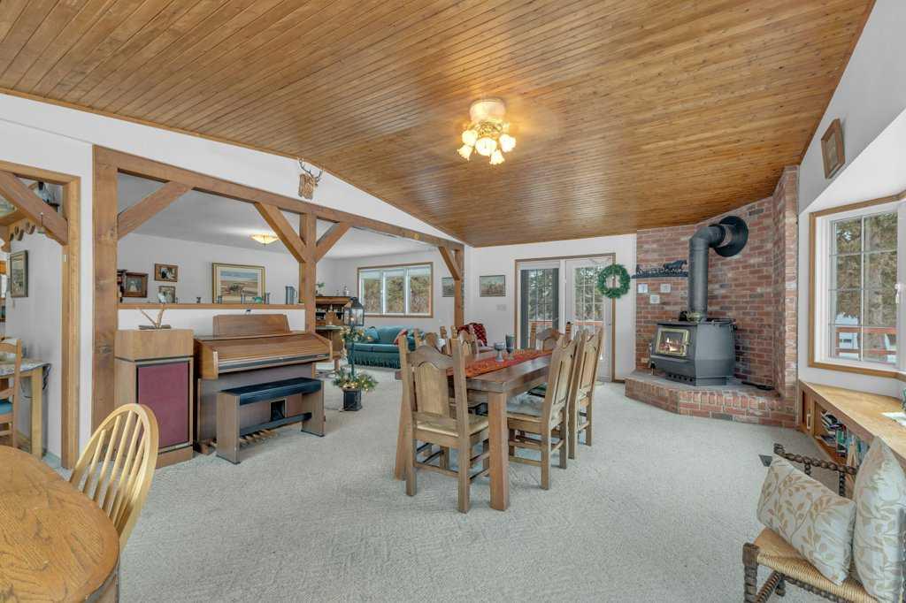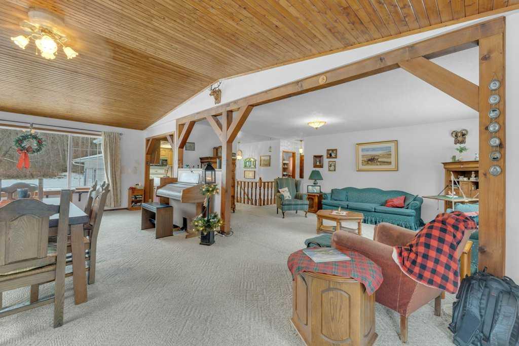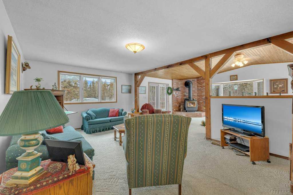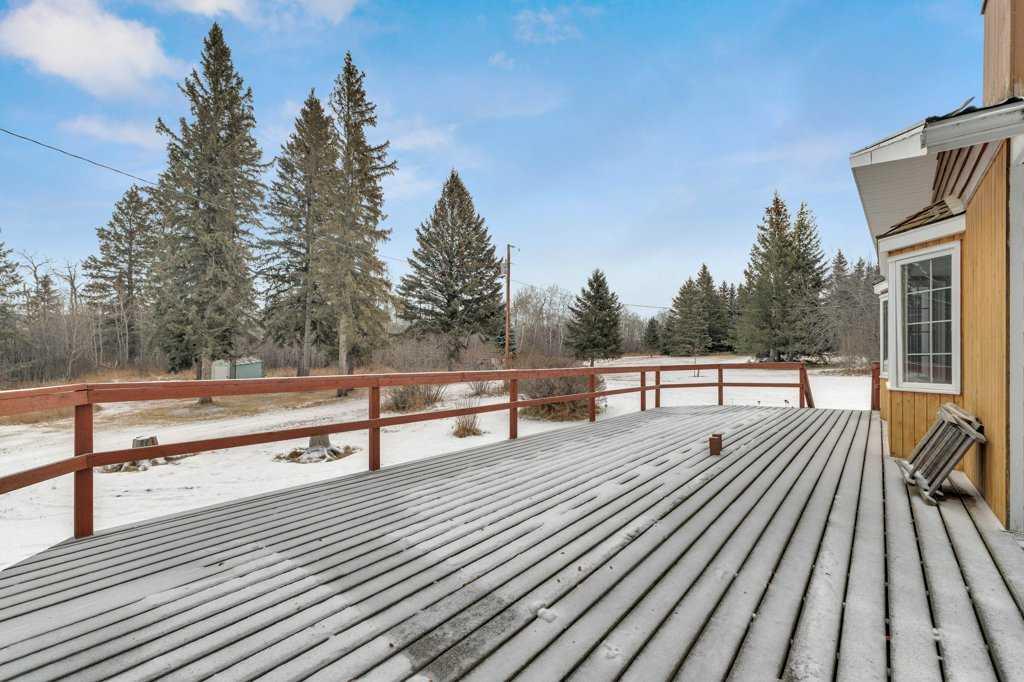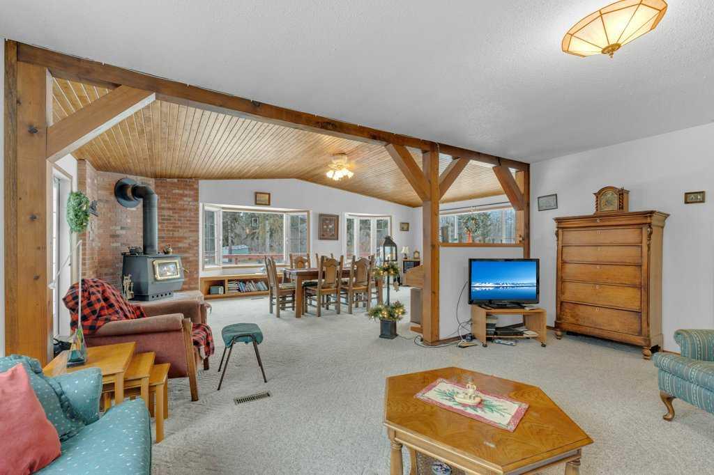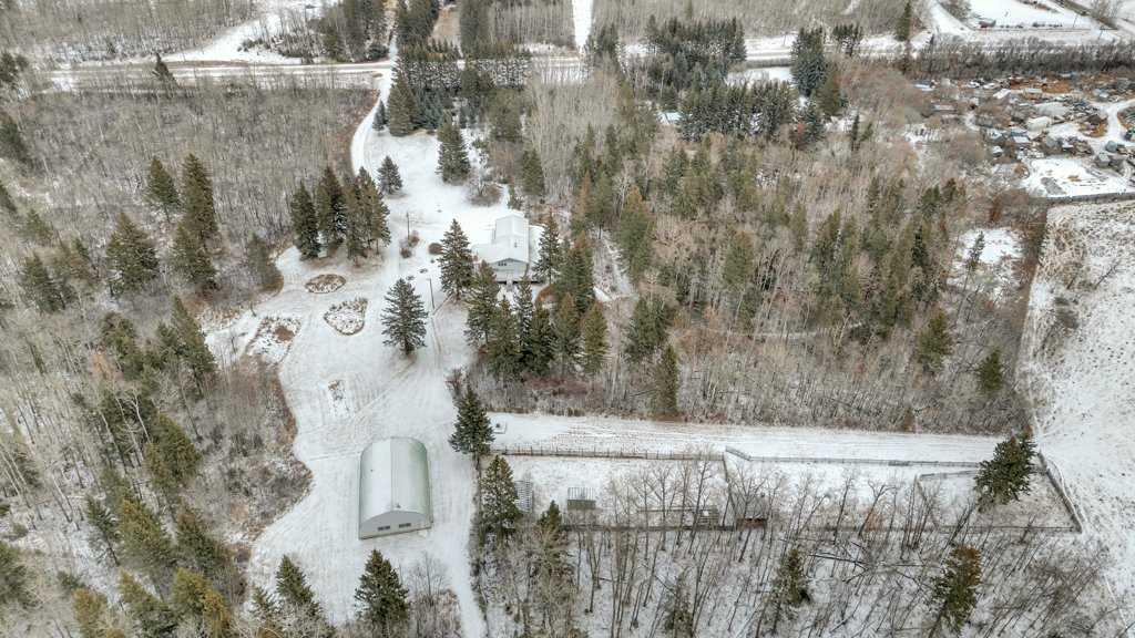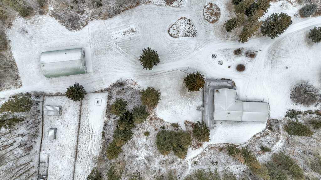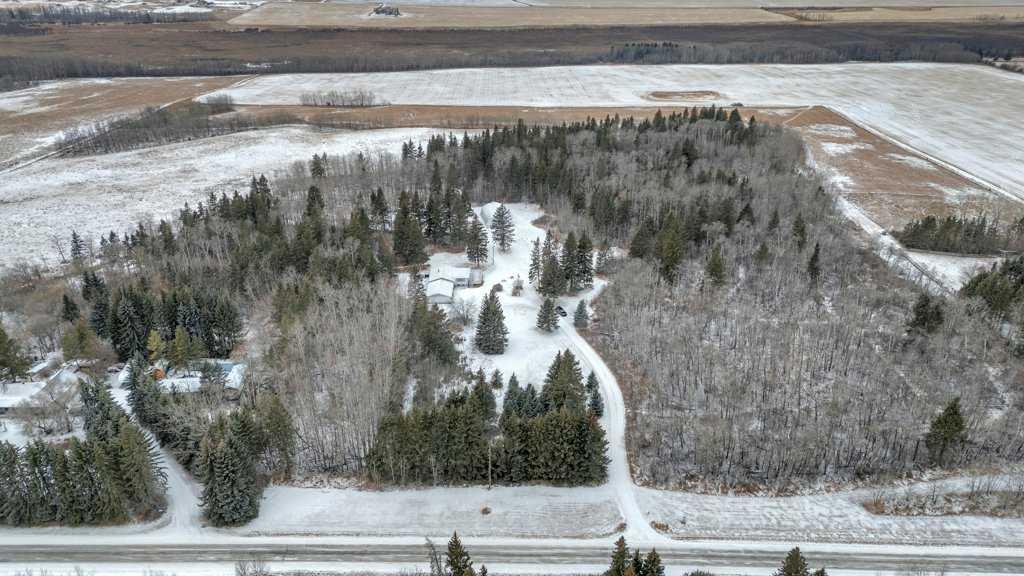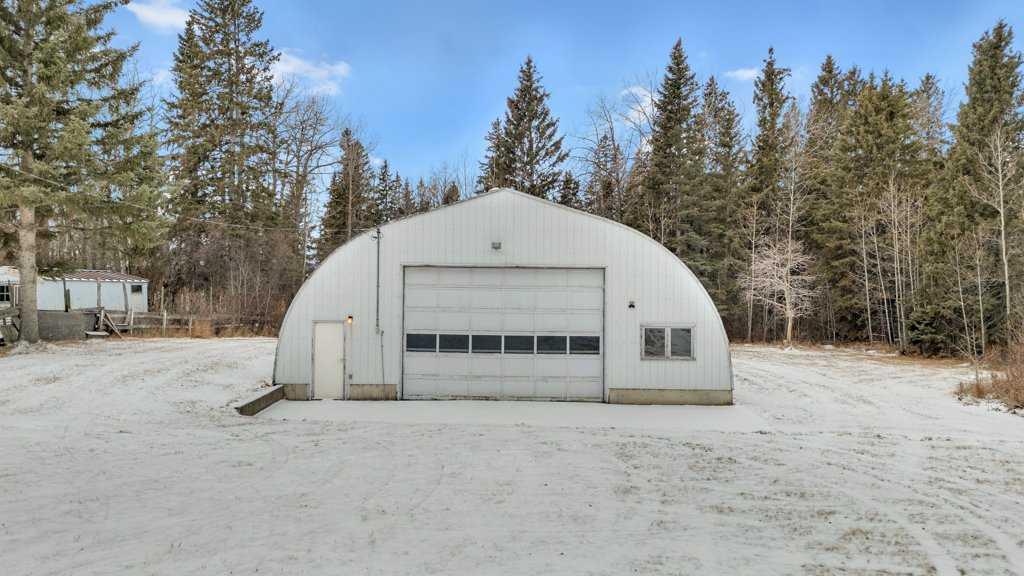 Discover the ideal combination of privacy, generous space, and everyday convenience with this 35-acre property, located just minutes from town. From the moment you arrive, this 1,377 sq. ft. bungalow and oversized garage set a warm, welcoming tone. Step inside to a bright kitchen featuring a center island, the perfect hub for family meals and entertaining. Just off the entry, you’ll find convenient main floor laundry complete with a new washer and dryer (2024). The open dining area easily accommodates a full-sized dining suite, while the spacious living room is bathed in natural light from two large bay windows. A cozy corner wood-burning stove with a classic brick surround creates the perfect gathering spot for relaxation and connection. Down the hall, a versatile bonus room currently used as a quiet reading nook could seamlessly become a home office, hobby room, or additional bedroom. A full 4-piece bathroom and a comfortable primary bedroom complete the main floor. The fully finished lower level expands your living space with an additional bedroom, two generous recreation rooms, a convenient 3-piece bathroom, and a dedicated furnace/utility room. Extensively renovated in 1991, the home blends timeless charm with lasting quality and modern functionality. The basement features a professionally installed weeping tile system and super sump pump, ensuring a dry and secure space. Outside, a large wraparound deck overlooks the private, park-like yard, framed by mature trees that offer both beauty and natural wind protection. The property is fully perimeter-fenced and cross-fenced—perfect for livestock or horses. Supporting features include a spacious 40' x 60' insulated quonset with an 18' x 12' overhead door, with all shelving and workbenches included. Additional improvements include well-maintained corrals, a chicken coop, garden shed, and a reliable stock waterer. Whether you’re seeking a serene rural retreat or the ultimate acreage to embrace country living, this exceptional property truly has it all.