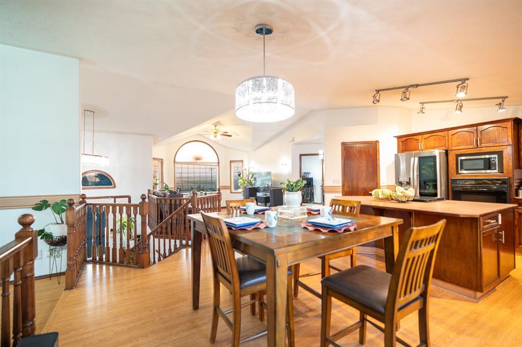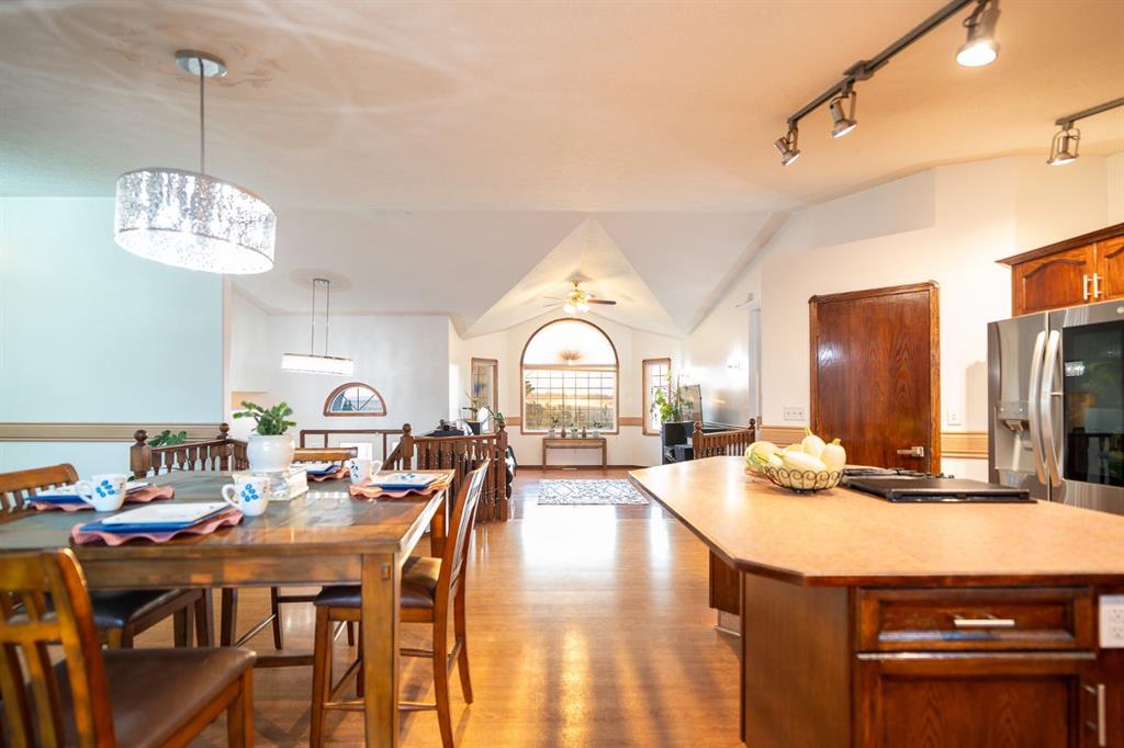 Inside, the home welcomes you with vaulted ceilings and a bright, open layout that creates a warm and comfortable living space. The main floor is designed for both everyday living and entertaining, with a large kitchen, generous dining area, and comfortable living room where family and friends can gather. Large windows bring in plenty of natural light and allow you to enjoy views of the yard and surrounding area.