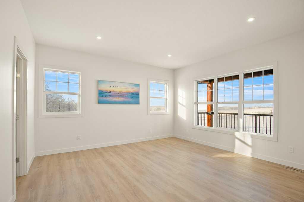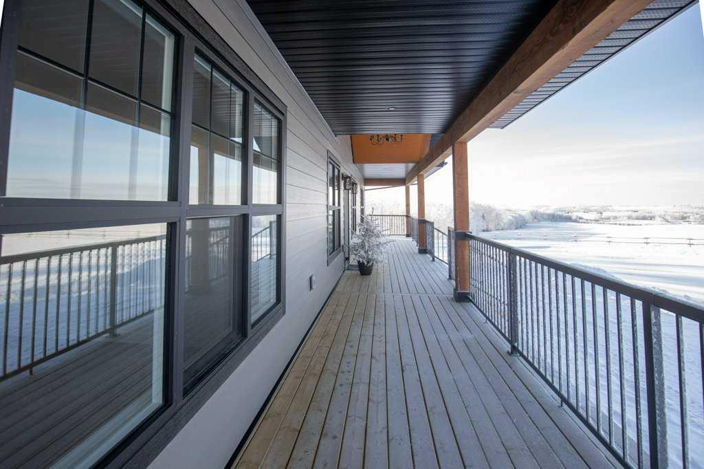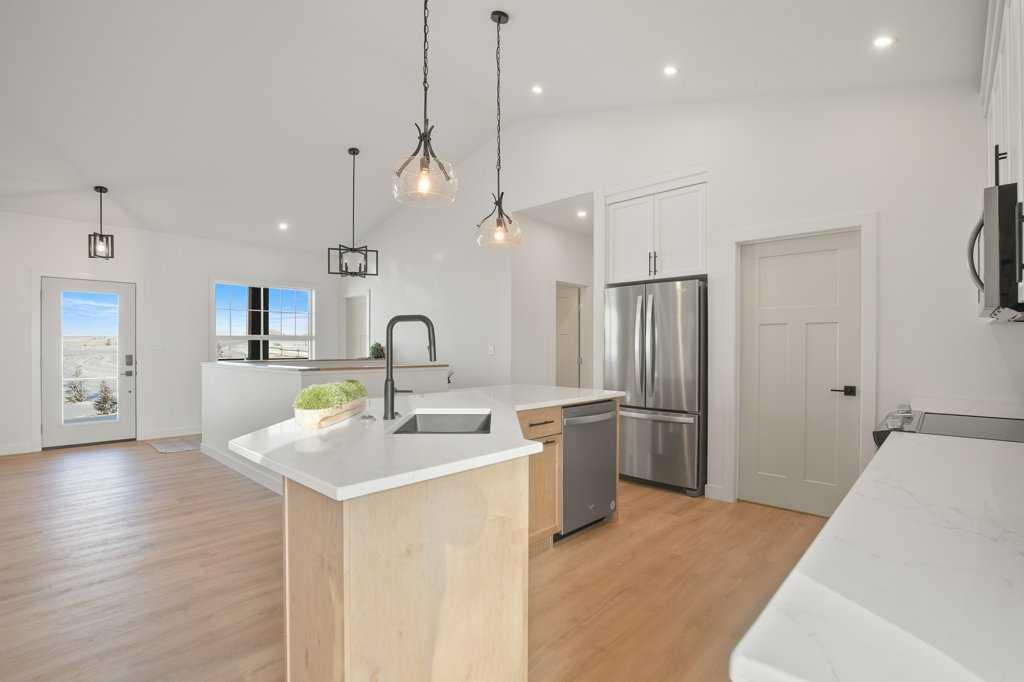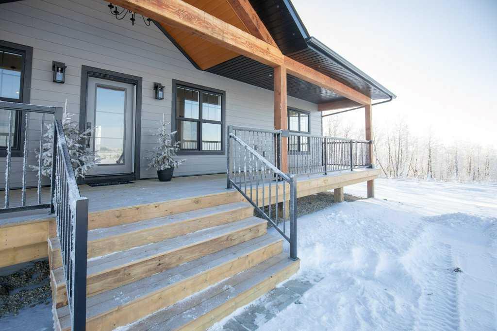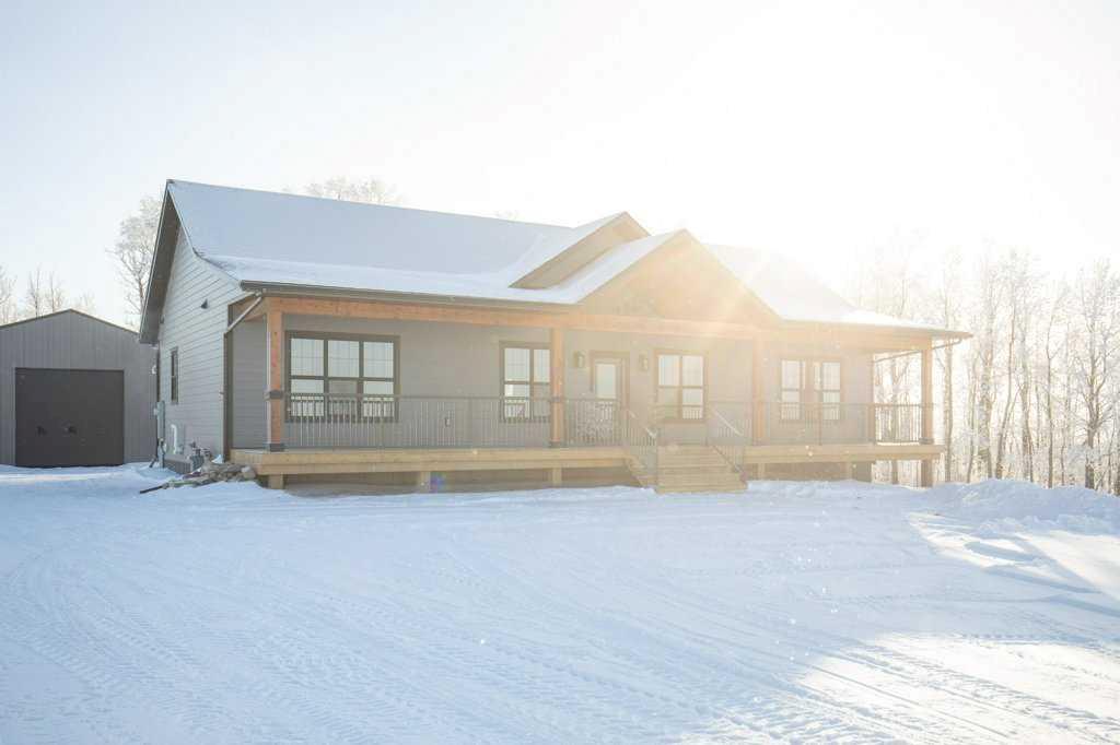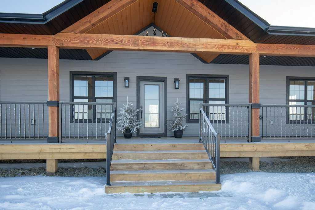 This impressive RANCH STYLE HOME is expansive and exquisite. Perched on 1.65 acres in a peaceful setting surrounded with serene views. Bold beams and a spacious veranda span the length of exterior. Handsome Hardy Board siding gives that top notch touch to the curb appeal. The 36x50 SHOP offers indoor space with endless possibilities!! Step inside and breath in the airy vaulted ceilings and modern design. The kitchen features two tone custom cabinetry, quartz countertops, and stainless steel appliances. The pantry is a dream with ample storage space. Step thru the glass sliding doors for easy access to the endless backyard. The primary bedroom is spacious and boasts a spa-like 5-piece ensuite. Including a gorgeous glass shower, double sinks, and massive walk-in closet. A generous bedroom and 4-piece bathroom offer additional accommodations. Laundry is also conveniently located on this level. The rear entry door brings you to the beautiful mudroom. Use your imagination, because the basement awaits your finishing touches. If you are looking to escape the hustle and bustle of city life, this could be the one you've been searching for. This property offers the cherished perks of an acreage lifestyle. Peace, privacy and space to stretch out. Schedule your showing today!