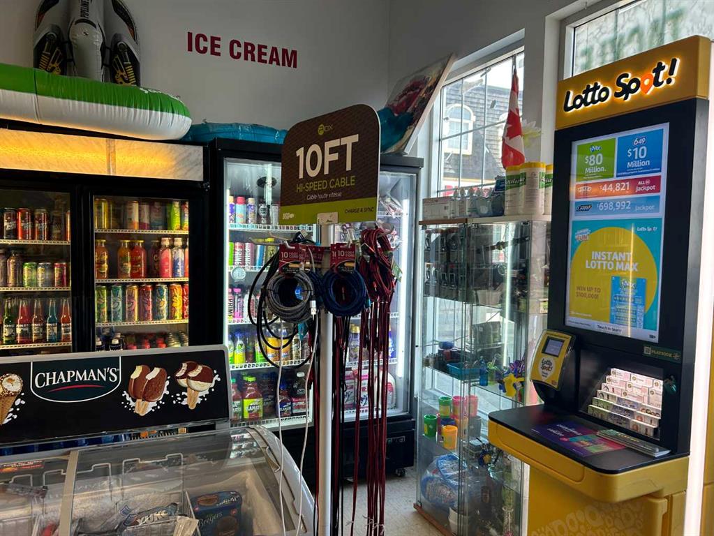 The store offers a comprehensive selection of products, including dairy, snacks, general household necessities, beachwear, and fishing tackle. It also generates additional revenue from tobacco and lottery sales, along with a popular fresh coffee station. A dedicated storage area in the rear provides convenient space for inventory management.