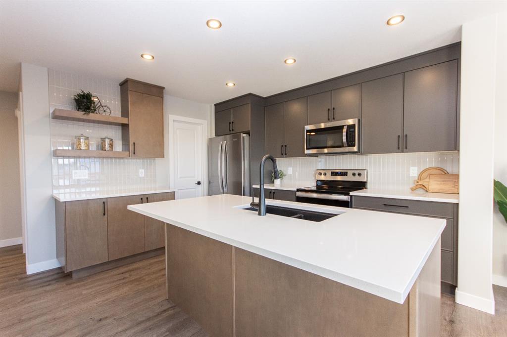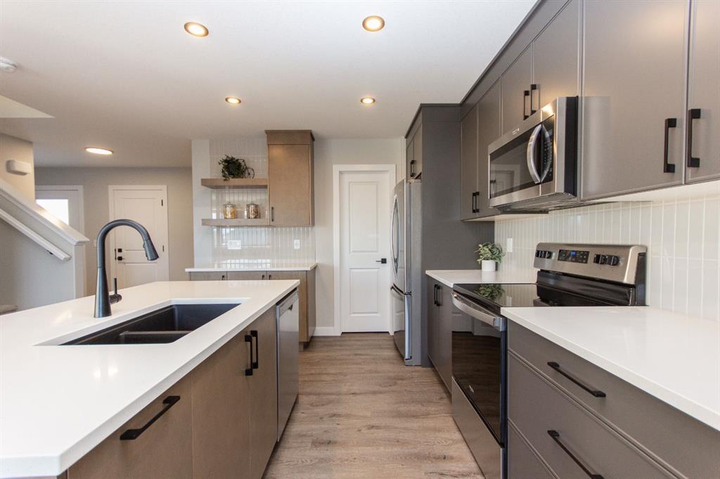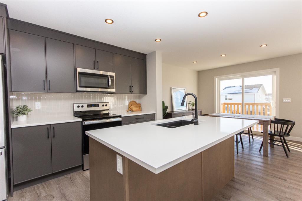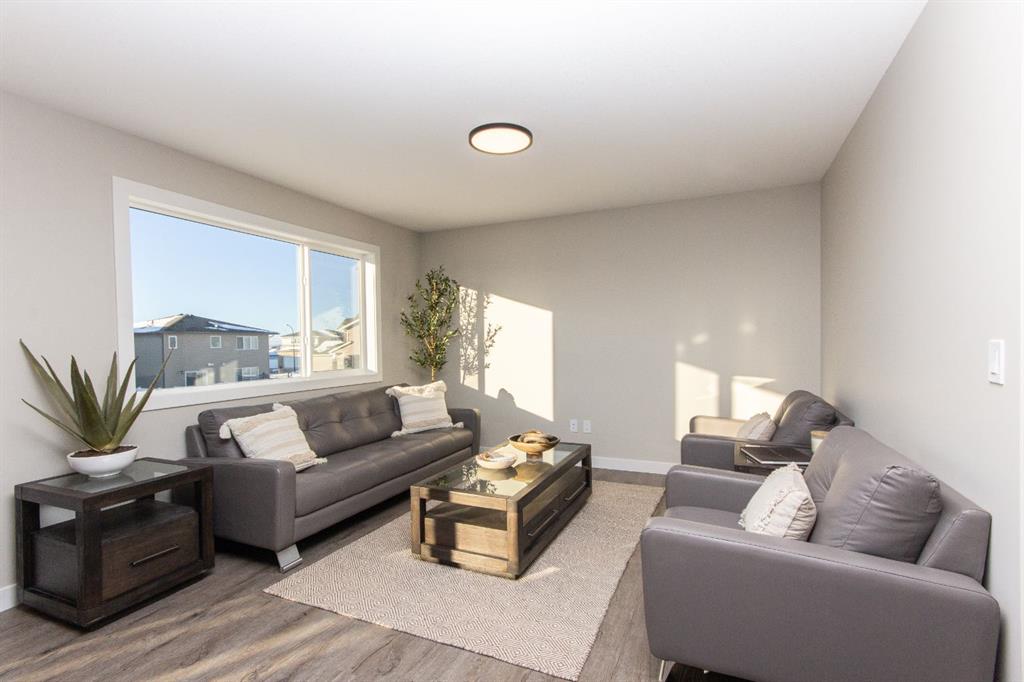 Be the first owner of this brand new Laebon Home situated in the sought after neighbourhood of Beacon Hill, just steps from multiple parks, green spaces, and Beacon Hill Elementary! This stylish Paxton two storey floor plan offers 1707 square feet above grade, a wide open living space, large windows, 2nd floor laundry, and a large bonus room! The main floor features vinyl plank flooring throughout, and a beautiful kitchen offering two toned raised cabinetry, stainless steel appliances, quartz countertops, a large island with eating bar, and a large walk in pantry. The adjacent eating area has sliding patio doors that lead out to the deck. Head upstairs to find two nicely sized kids/spare rooms that share a large 4 pce bath, and a large master bedroom with its own private 4 pce ensuite and huge walk in closet. Laundry is conveniently located near the bedrooms, and the large and bright bonus room gives you additional living space to enjoy. The attached garage is insulated, drywalled, and taped. If you need more space, the builder can complete the walkout basement development for you, and allowances for blinds and a washer & dryer can also be included to make this a fully move in ready home. Poured concrete front driveway, front sod, and rear topsoil are included in the price and will be completed as weather permits. GST is already included in the purchase price. Live worry free thanks to a full 1 year builder warranty and 10 year Alberta New Home Warranty. Taxes have yet to be assessed. This home is currently under construction and has an estimated completion date of mid February 2026. Photos and renderings are examples of a previous home built with the same floor plan, finishes and colours will not be identical to photos.