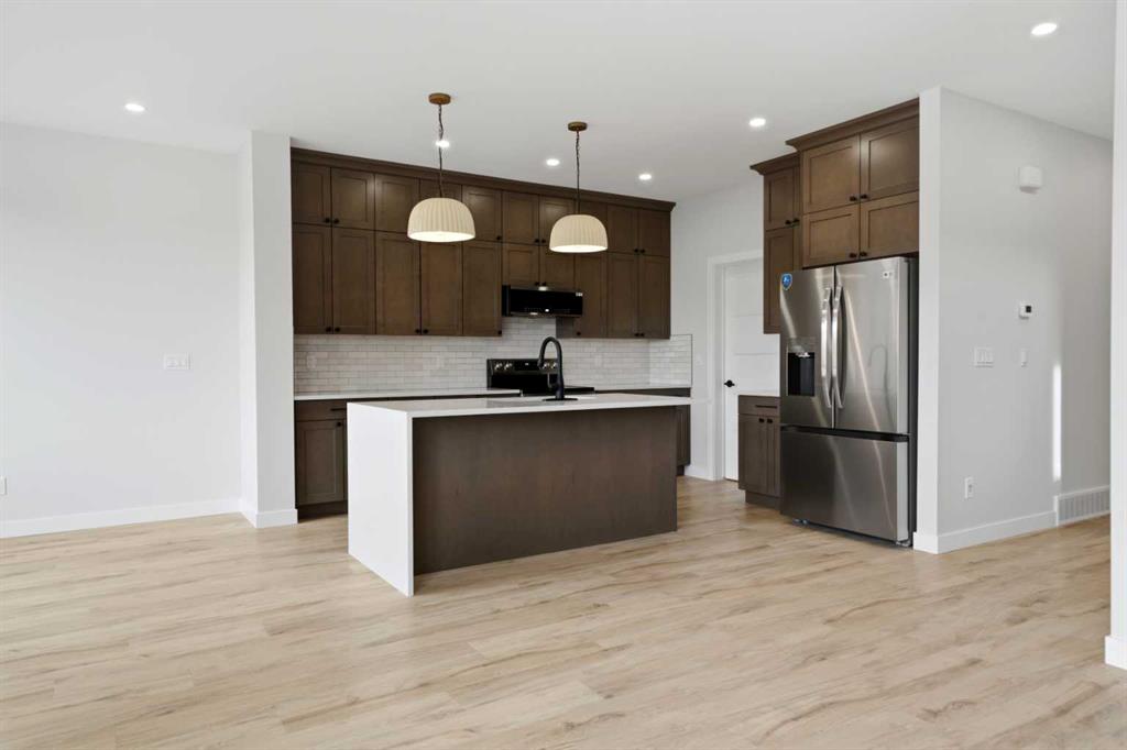 When quality truly matters, this stunning 2059 sq ft two-storey offers immediate possession and exceptional craftsmanship throughout. A spacious front entry with ample storage and mudroom access welcomes you into a bright, open-concept main floor designed for effortless entertaining. The show-stopping kitchen features ceiling-height cabinetry, a large centre island with eating bar, waterfall quartz countertops, and stainless steel appliances, including a fridge with water and ice. A convenient walkthrough pantry connects directly to the garage—perfect for unloading groceries with ease.