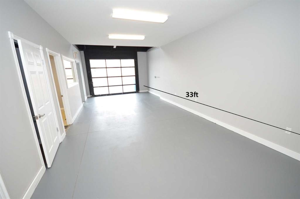 Total area: ~1,430 sq ft (main + mezzanine). 10’ x 8’ overhead bay door + man door. Two bathrooms. Kitchenette and storage mezzanine. 9’ ceiling height in shop. Zoned for light industrial/commercial use. Lease Rate: Negotiable — contact for terms and availability.
