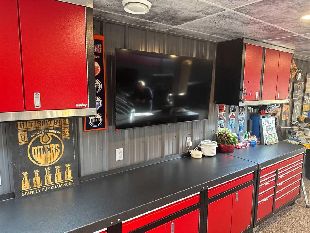 Completely rebuilt in 2023–2024, this industrial condominium offers 2,019 SF of registered space plus approximately 870 SF of structural additions across three levels (approx. 2,889 SF total improved area), within a well-maintained small-format complex on Condominium Plan 0220264. The main floor is a purpose-built automotive showroom and workshop: soaring ceilings, dramatic exposed architectural steel trusses, premium epoxy flooring, showroom-grade LED lighting, a BendPak automotive lift, a dedicated welding bay, and a full suite of Hayley custom cabinetry with integrated sink and countertop workspace. A presentation-ready boardroom seats 6+ with built-ins throughout. Two private offices complete the professional package — everything a serious operator needs to work, meet clients, and make a statement, all under one roof.