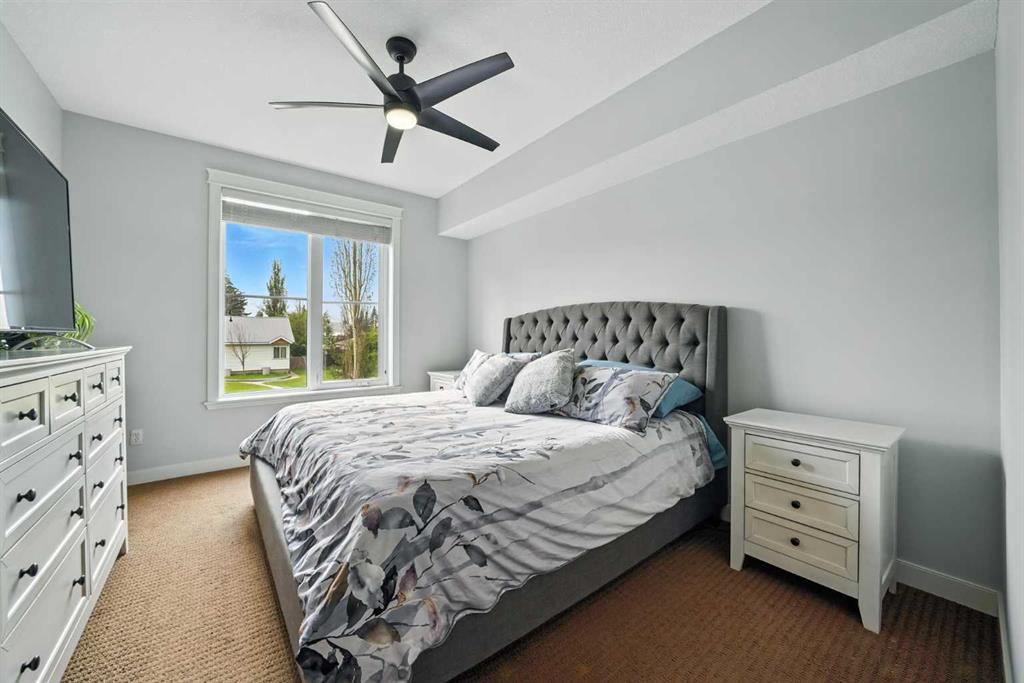 Welcome to this bright and stylish 2-bedroom, 2-bath condo ideally located just steps from downtown and beautiful Sylvan Lake. This open-concept home offers the perfect blend of comfort and convenience with a spacious layout designed for modern living. The kitchen is a true highlight, featuring a large island with granite countertops, stainless steel appliances, a built-in wine cooler, and plenty of space for cooking or entertaining. The open living and dining area is filled with natural light, creating a warm and inviting atmosphere. The primary suite offers a relaxing retreat with a walk-in closet and a large corner soaker tub in the large ensuite bathroom. A second bedroom and full bathroom make it perfect for guests or a home office. In-suite laundry adds everyday convenience. Enjoy the best of both worlds—easy access to shopping, restaurants, and the lake, all from the comfort of your bright and beautiful condo. Heated underground parking and storage unit.