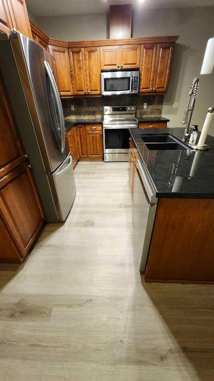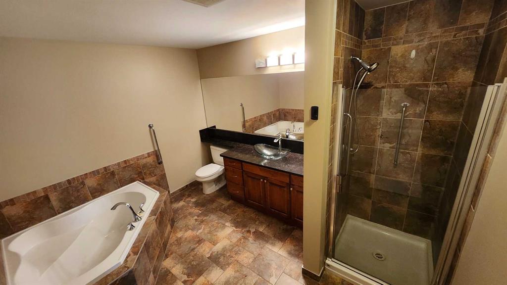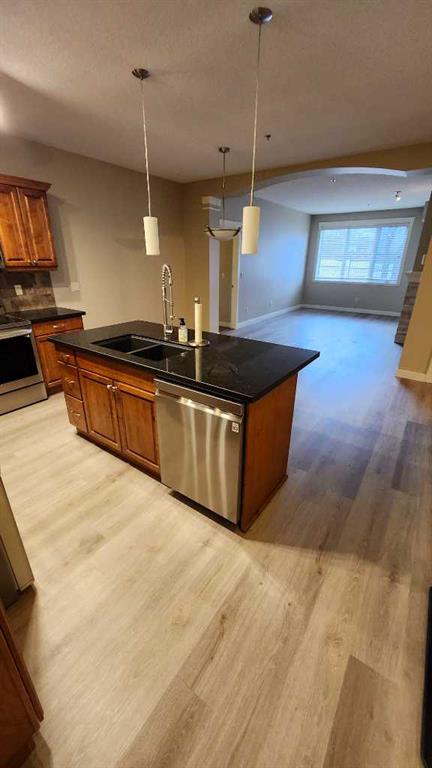 Welcome to this bright and stylish 2-bedroom, 2-bath condo ideally located just steps from downtown beautiful Sylvan Lake. This open-concept apartment offers the perfect blend of comfort and convenience with a spacious layout designed for modern living. Recent upgrades include vinyl plank flooring, kitchen appliances, fireplace finishing and bathroom countertops/sinks! The kitchen is a true highlight, featuring a large island with granite countertops, newer stainless steel appliances, built-in wine cooler, and plenty of space for cooking or entertaining. The open living and dining area is filled with natural light, creating a warm and inviting atmosphere complete with newer flooring and cozy gas fireplace. The primary suite offers a relaxing retreat with a walk-in closet and a large corner soaker tub in the large ensuite bathroom. A second bedroom and full bathroom make it perfect for guests or a home office. In-suite laundry adds everyday convenience. Enjoy the best of both worlds—easy access to shopping, restaurants, and the lake, all from the comfort of your bright and beautiful condo. Heated underground parking and storage unit. No pets and no short term rentals in this building.