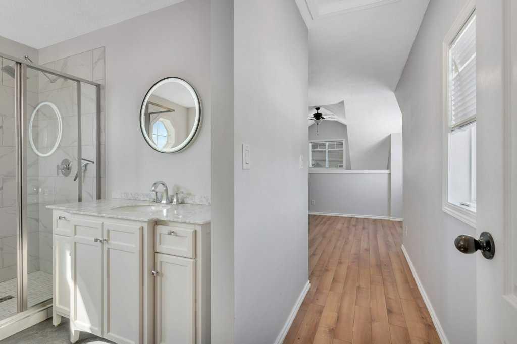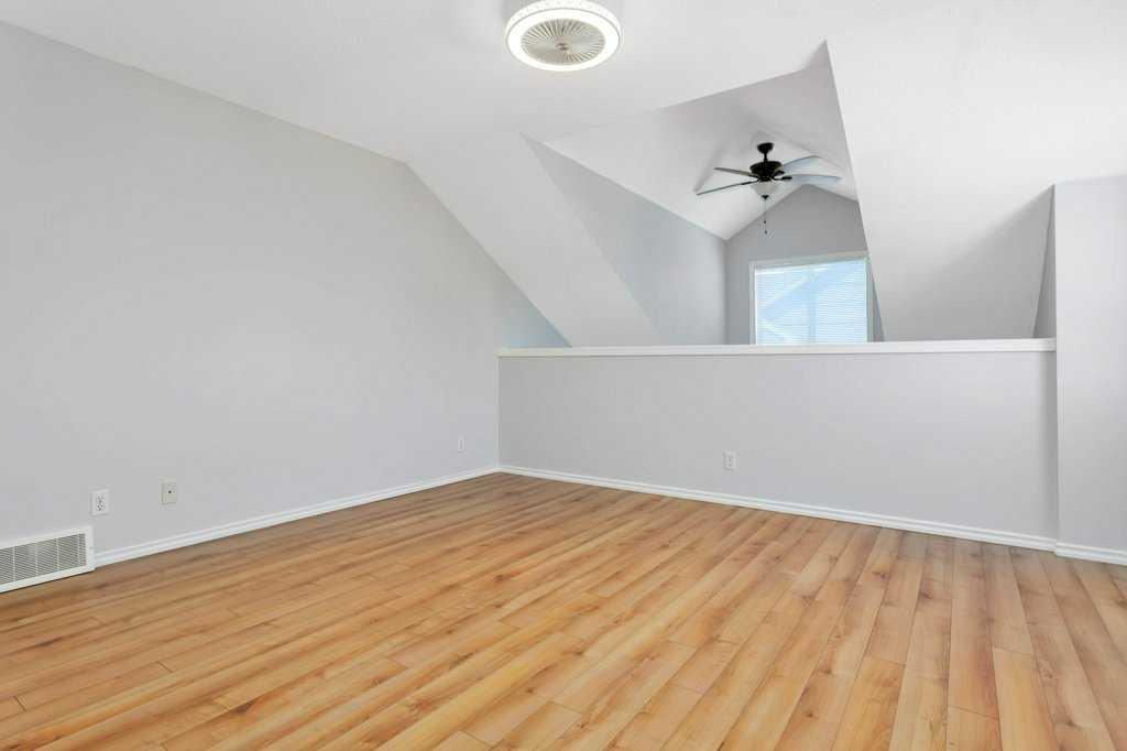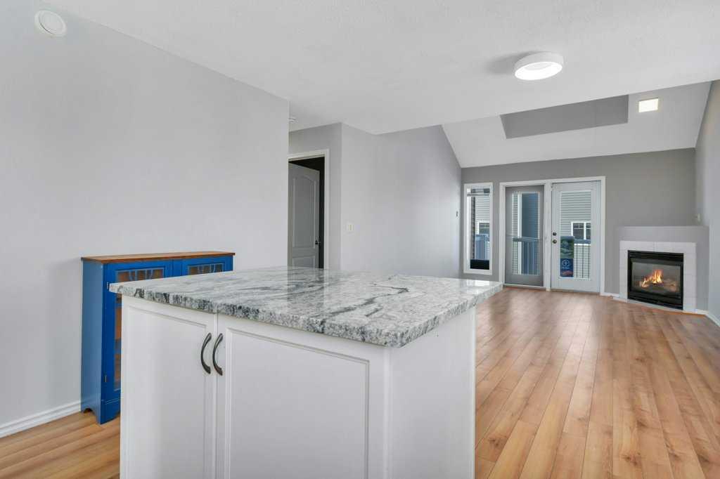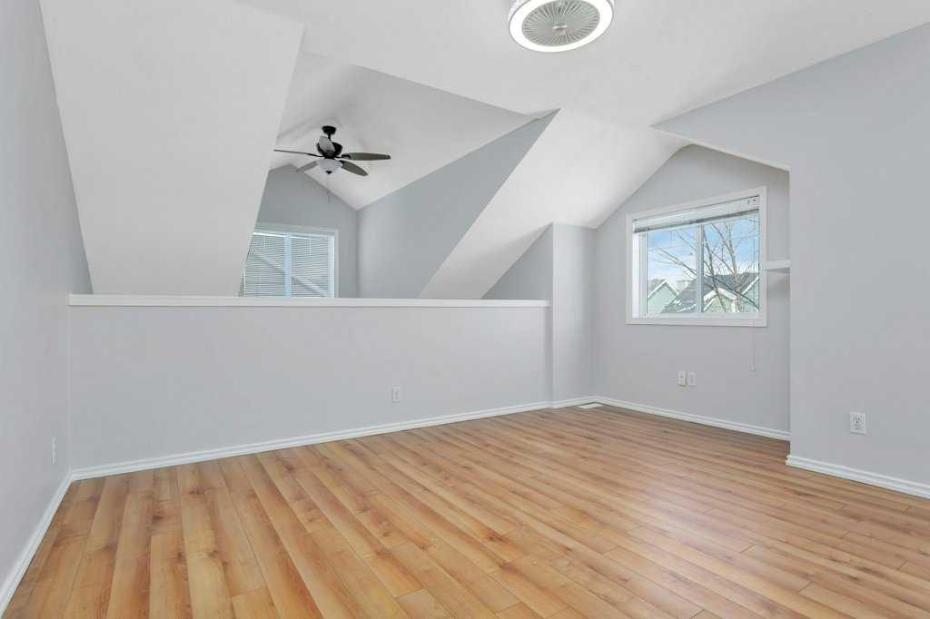 END UNIT | RENOVATED ENSUITE BATH | QUARTZ COUNTER-TOPS ~ This townhome offers added value with its desirable end-unit location, extra side windows and visitor parking close by. Just a short walk to the lake, this property combines lifestyle and functionality in one of Sylvan Lake’s most convenient settings. ~ The main floor features an open-concept layout with vaulted ceilings, cozy gas fireplace, and access to the rear deck with natural gas BBQ line—ideal for relaxing or entertaining. ~ Since 2022 the kitchen has been refreshed with quartz countertops, full backsplash, and updated appliances, offering a clean, modern feel with a functional island and ample cabinetry. ~ Two bedrooms are located on the main floor, including one with a Jack and Jill door to the 4-piece bathroom, plus convenient main floor laundry. ~ Upstairs, the loft-style primary retreat has been completely upgraded with a fully renovated 5-piece ensuite, creating a private, spa-like space. ~ Additional improvements include fresh paint and updated LED lighting throughout, giving the home a bright, move-in-ready feel. ~ A strong option for buyers looking for low-maintenance living, a lock-and-leave lifestyle, or a well-located property close to the lake and amenities.