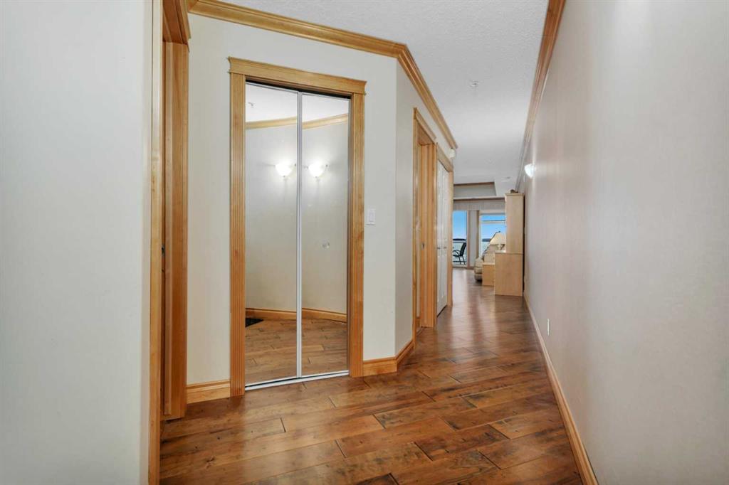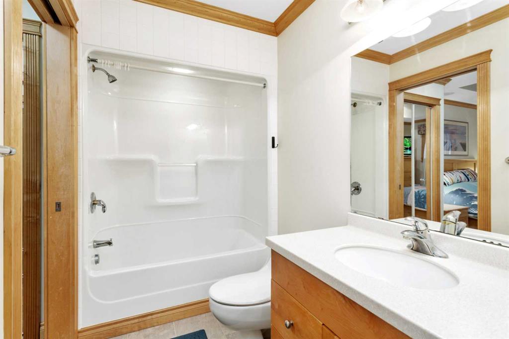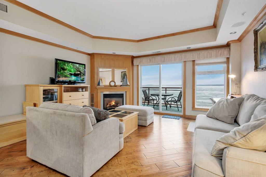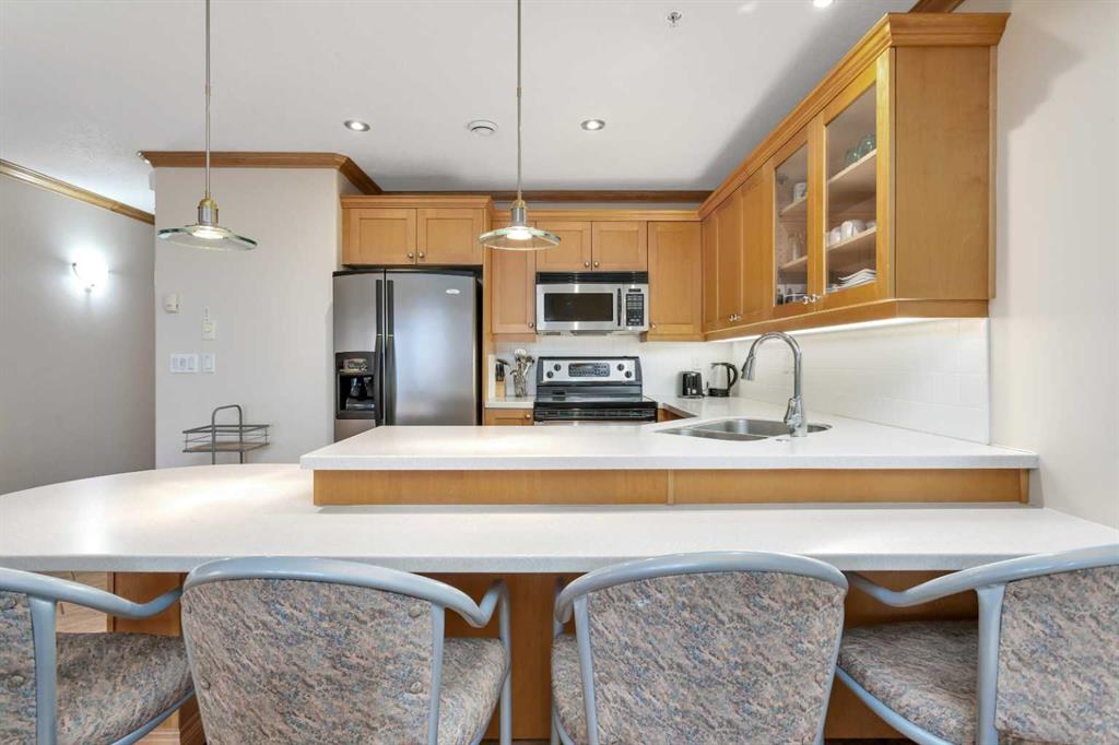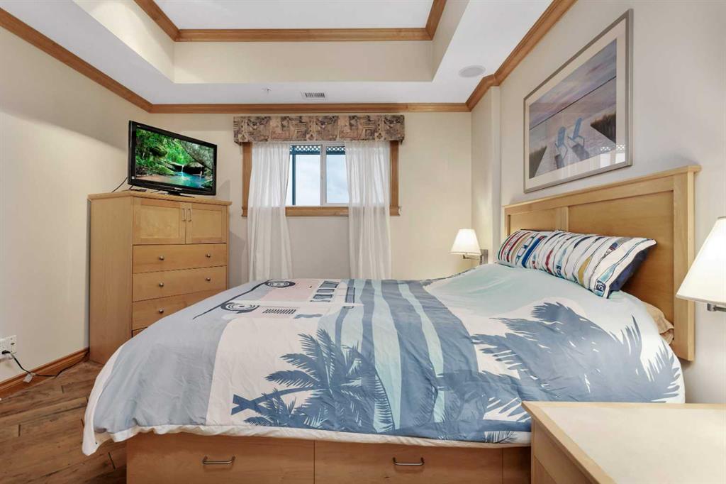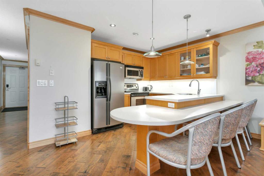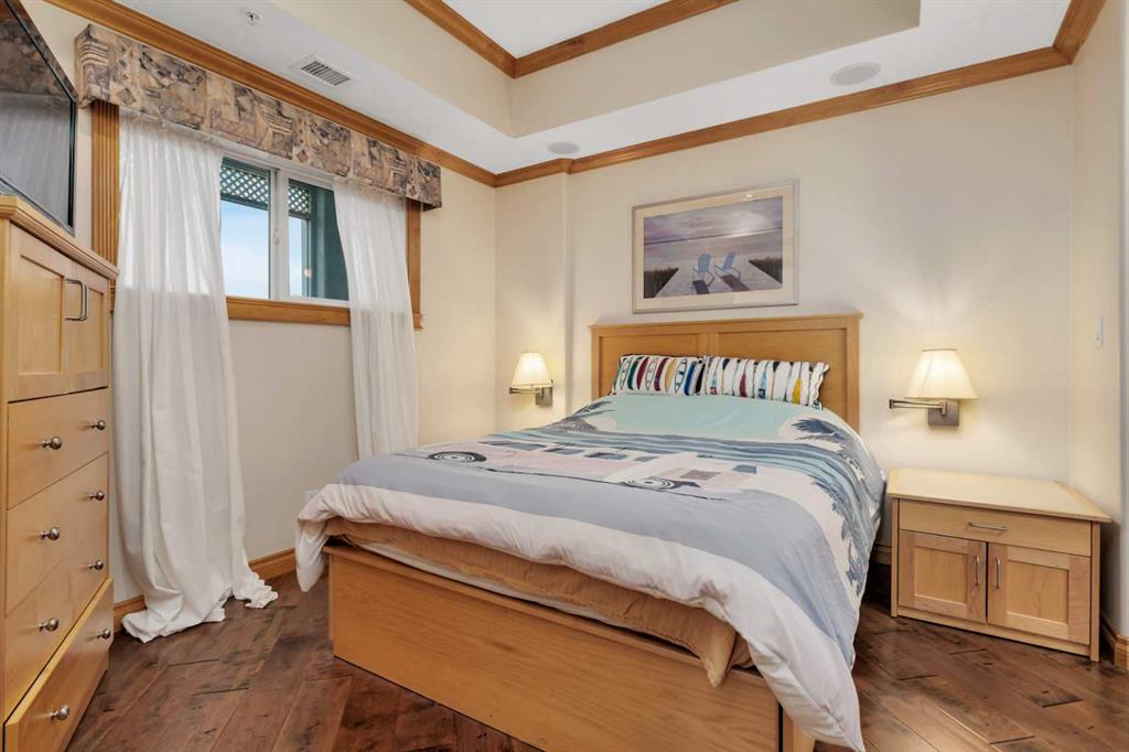 Discover elevated lakeside living in this beautifully maintained 4th-floor condo in the coveted Chateau Suites building, right on the shores of Sylvan Lake. This 1-bedroom, 1-bathroom home combines style, comfort, and unbeatable views, with a private covered balcony that offers the perfect perch to enjoy stunning sunrises over the water. Inside, you’ll find an open-concept layout with warm wood tones, a gas fireplace and large windows that bring in an abundance of natural light. The kitchen features upgraded appliances, a peninsula with seating, and ample cabinetry. The generously sized bedroom connects directly to the full bathroom, and convenient in-suite laundry is also included. This unit is being sold fully furnished and as-is, making it a true turn-key opportunity. Whether you plan to move in, rent it out, or escape to the lake on weekends, just bring your suitcase and settle in! Titled heated underground parking and a secure storage locker are included. Monthly condo fees cover ALL utilities, cable, and internet, giving you stress-free ownership. The Chateau Suites building offers unbeatable walkability to the beach, trails, downtown shops, cafes, and the vibrant lakeside atmosphere Sylvan Lake is known for.