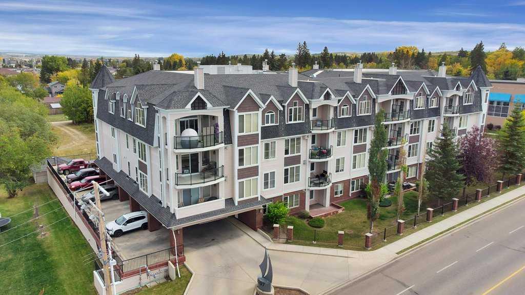 Now offering a "Top Floor" unit with 2 titled underground heated parking stalls in Sylvan Lake, AB. This well maintained unit features granite counter tops in the kitchen and bathrooms. A gas fireplace in the living room with a peaked ceiling. 2 bedrooms and 2 (4pce) bathrooms. In suite laundry room. Balcony with lake views. Enjoy a short walk down to Lakeshore Drive and take in the beach, gift shops and a variety of restaurants. Sylvan Lake offers plenty of amenities and activities.