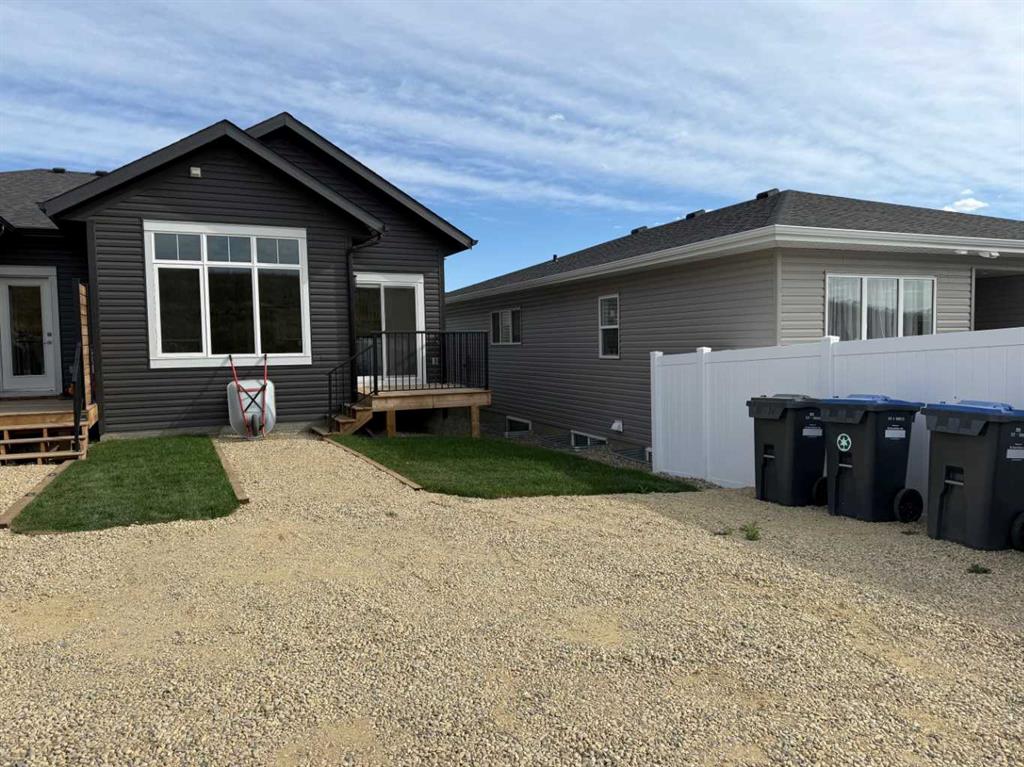 Immediate possession, this brand new bungalow floorplan by L&S Developments is perfect for a starter home or empty nester. Imagine having your morning coffee on the 20x8 covered front porch. Enter into good sized front foyer, with warm toned vinyl plank flooring leading to open floorplan. The vaulted ceilings and large windows make this home super bright and appealing. Metal spindle half wall for stairwell. Functional kitchen with white shaker cabinets, & feature navy centre island eating bar, quartz countertops, cabinet pantry, garbage/recycling pullouts, stainless steel appliances, chrome fixtures. Sliding door off of dining room to 7x8 back deck. Primary bedroom has room for king sized bed with black ceiling fan. Secondary bedroom is good sized for guests or office, carpet in both bedrooms. 4pce bathroom & handy main floor laundry. Basement is undeveloped but potential for family room, exercise area, bedroom and roughed in for another bathroom. Front sod and concrete sidewalk, backyard is black dirt leveled to grade. This home is located in Grayhawk on the north west side of Sylvan Lake. With easy access to highway and close proximity to the lake, golf course and all town amenities this up and coming subdivision is sure to meet all your needs. Future commercial and school sites as well as walking paths, parks playgrounds and pond. An abundance of wildlife to watch and a progressive new neighborhood to enjoy. GST included with rebate to builder. Taxes to be assessed.