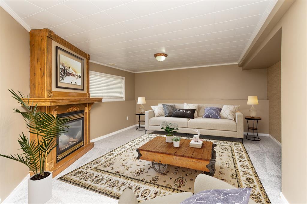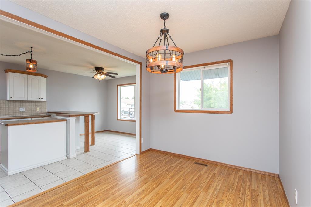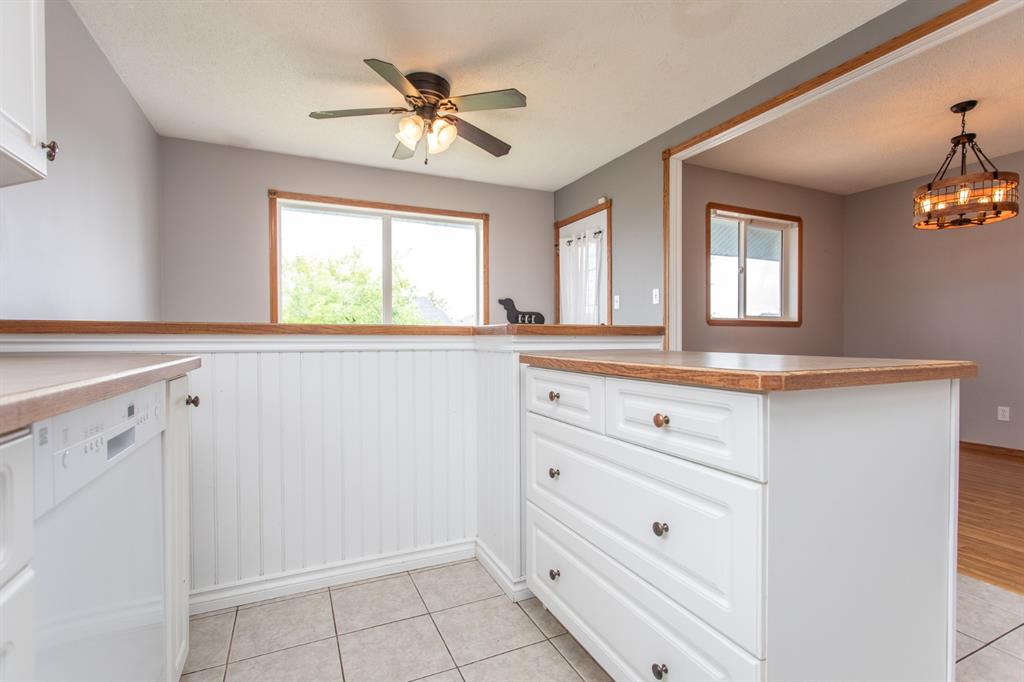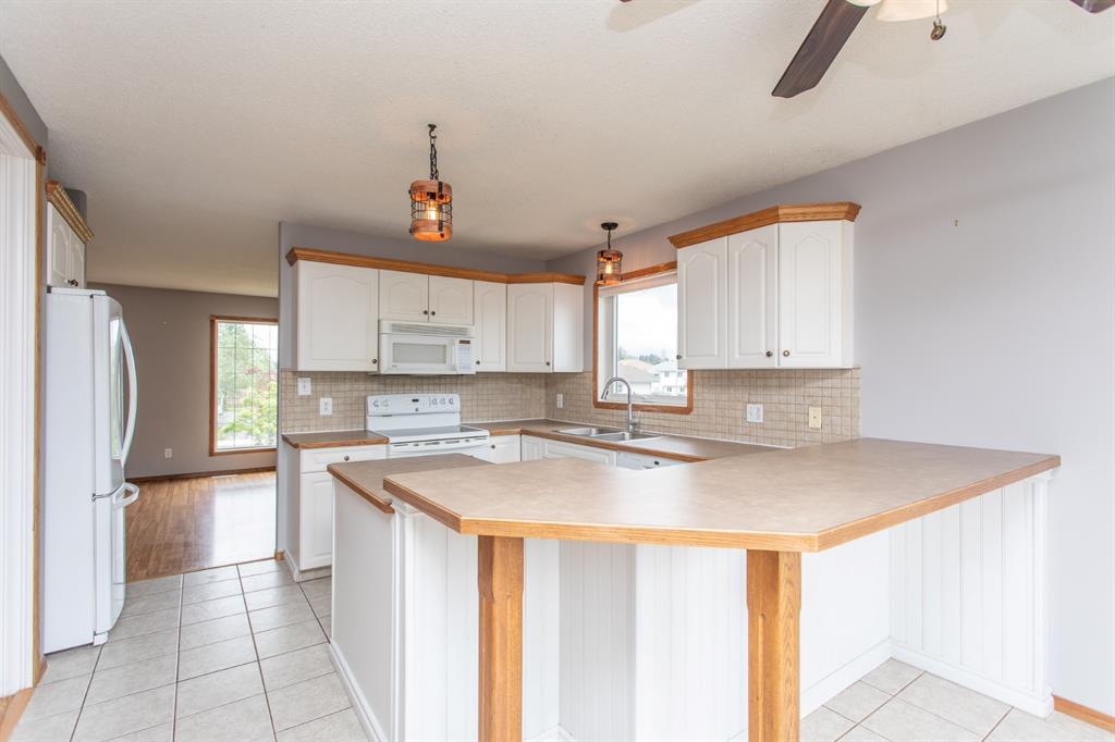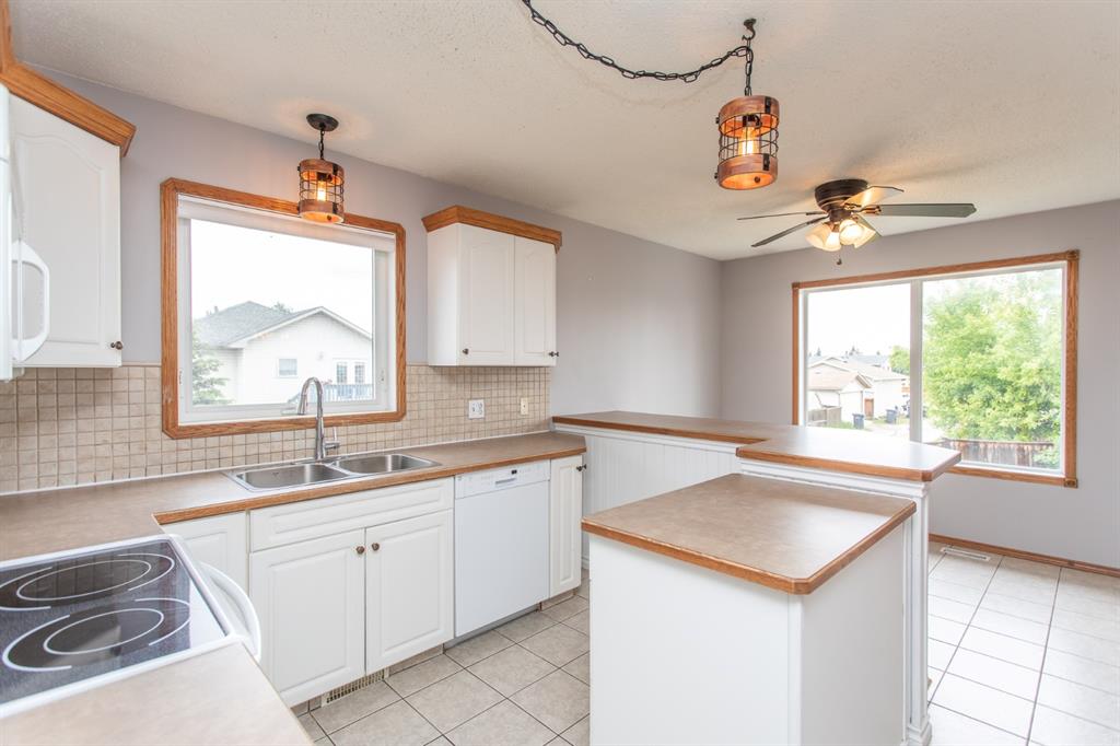 This property isn’t just a house, it’s the perfect place to call home. Natural light fills the spacious living room, creating an inviting atmosphere for relaxing or entertaining. Start your mornings with coffee at the sunny breakfast bar, or host memorable meals in the family dining area. From the kitchen, step directly onto the deck. Perfect for enjoying warm days or evening gatherings. The primary bedroom offers a generous closet and a stylish 3-piece ensuite. The bright lower level features ground-level windows, an additional bedroom, a cozy gas fireplace, a full bathroom, and a convenient laundry room. Outside, two parking stalls await, and the fenced yard offers plenty of room for future garage plans or outdoor enjoyment. Best of all, you’re just a five-minute walk from the lake. The perfect finishing touch to this beautiful property