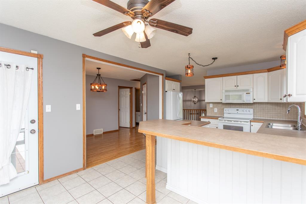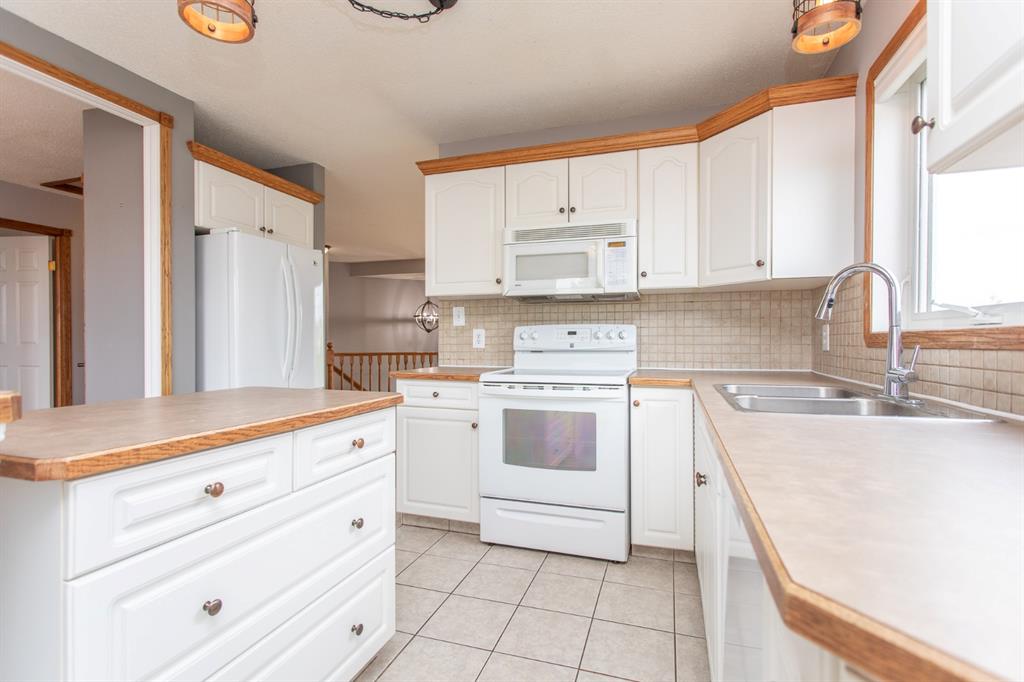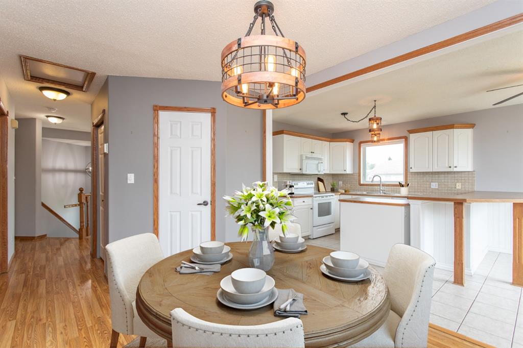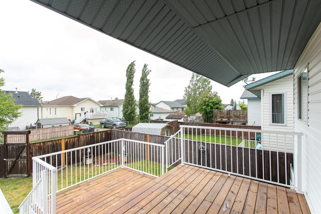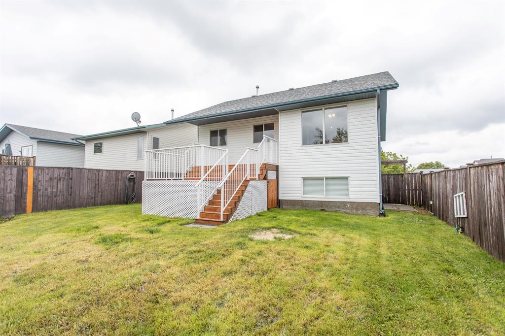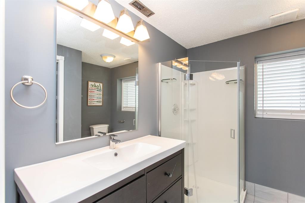 This property isn’t just a house, it’s the perfect place to call home. Natural light fills the spacious living room, creating an inviting atmosphere for relaxing or entertaining. Start your mornings with coffee at the sunny breakfast bar, or host memorable meals in the family dining area. From the kitchen, step directly onto the deck. Perfect for enjoying warm days or evening gatherings. The primary bedroom offers a generous closet and a stylish 3-piece ensuite. The bright lower level features ground-level windows, an additional bedroom, a cozy gas fireplace, a full bathroom, and a convenient laundry room. Outside, two parking stalls await, and the fenced yard offers plenty of room for future garage plans or outdoor enjoyment. Best of all, you’re just a five-minute walk from the lake. The perfect finishing touch to this beautiful property