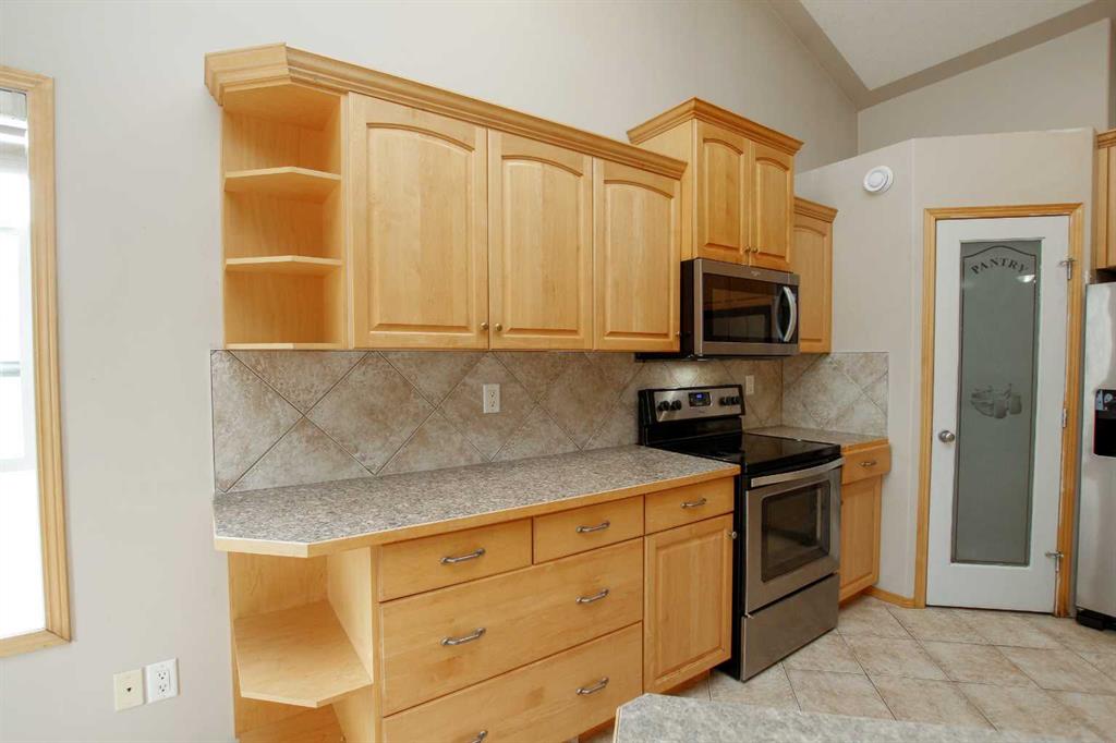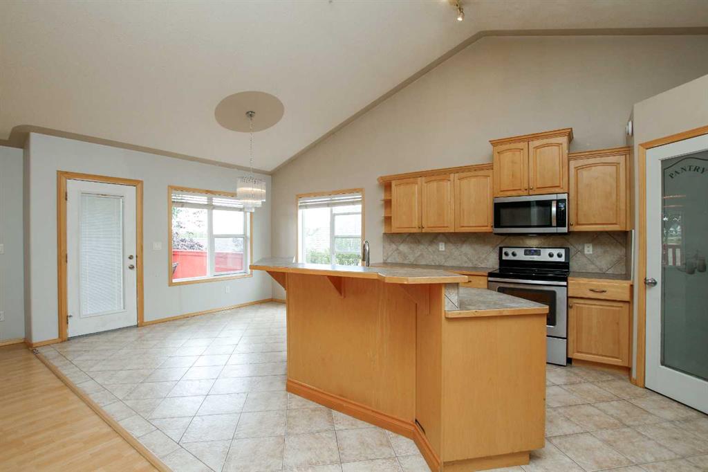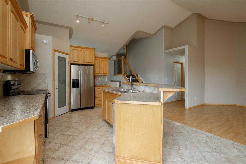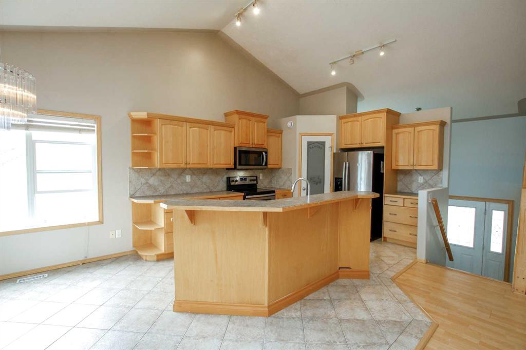 IMMEDIATE POSSESSION AVAILABLE ~ FULLY DEVELOPED 4 BEDROOM + DEN, 3 BATH MODIFIED BI-LEVEL ~ 24' X 24' ATTACHED GARAGE ~ Covered front entry welcomes you and leads to a large, welcoming foyer with tile floors, and high ceilings ~ Open concept main floor is complemented by soaring vaulted ceilings, creating a feeling of spaciousness ~ The kitchen offers a functional layout and features plenty of light stained maple cabinets with pull out drawers and crown molding; tons of counter space including an island with an eating bar; tile flooring and a full tile backsplash; and corner pantry with built in shelving ~ The dining room is filled with natural light from the large windows and offers garden door access to the west facing deck with a BBQ gas line ~ More large windows in the living room fill the space with natural light and overlook the backyard ~ Two main floor bedrooms are both a generous size, and ample closet space with built in organizers ~ 4 piece main bathroom has tile floors and an oversized vanity ~ Open staircase leads to the primary bedroom located on it's own level, with plenty of space for a king size bed and furniture, plus a large walk in closet and a spa like ensuite with a corner soaker tub and separate walk in shower ~ The fully finished basement has large above grade windows and in floor heating ~ The family room is a generous size, has built in shelving and a cozy gas fireplace ~ French doors from the family room lead to the den ~ 4th bedroom is conveniently located next to the 4 piece basement bathroom with an oversized vanity and make up counter ~ Front load laundry pair ~ Other great features include; central vacuum, central air conditioning ~ 24' x 24' attached garage is insulated, finished with painted OSB, has built in shelving and a work bench, window for natural light and a man door to the side and backyard ~ The backyard is landscaped with well established trees and shrubs, has an upper deck with enclosed storage below, a lower ground level deck, and is fully fenced ~ Walking trail just behind the house connects to an extensive trail system with tons of parks, playgrounds, walking trails and an off leash dog park ~ Located walking distance to restaurants, shopping, schools, and easy access to the beach/downtown and the highway.