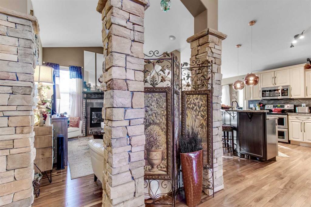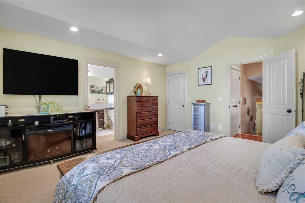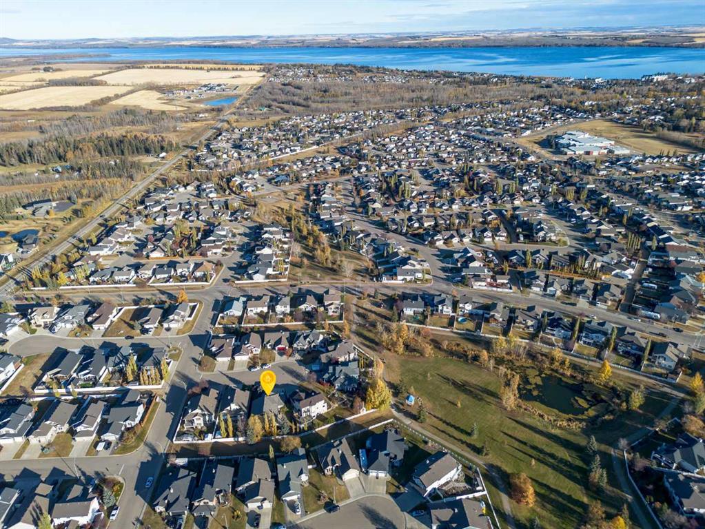 Magnificent Fully Developed Walkout Bi-Level in Sylvan Lake’s Sought-After Southwest Neighborhood of Lakeway Landing! Offering over 2,900 sq ft of high-quality craftsmanship, this exceptional property is a one owner home, maintained by the owner of Buylo Homes himself. The property backs directly onto a green space with walking pathways & park space with a pond just steps away. The grand open-concept living area has a warm country-nature atmosphere featuring cultured stone columns, archways, fireplace, vaulted ceilings, and rich walnut hardwood flooring. A front living room or lifestyle space with metal railing overlooks the tiled foyer, perfect for an office, music room, or family retreat. The kitchen includes a raised eating bar with sink, a corner pantry, and stainless steel appliances. Garden doors in the dining area lead out to the upper south-facing wrap-around deck - finished with duradeck flooring and glass railing, where mature trees provide privacy without blocking the view of the greenspace and pathways. The Primary Bedroom is a private retreat with vaulted ceiling, walk-in closet, and 4-piece ensuite featuring a soaker tub and separate shower. Two additional bedrooms, a full bath, and a laundry room with cabinets, a sink, and window complete the main level. The walkout basement continues to impress with in-floor heat, 10+ ft ceilings, cultured stone accents, 8-ft solid maple doors for the theatre room, a large family area, and an additional bedroom with 11-ft ceiling height. A 4-piece bathroom and generous storage room provide exceptional functionality. Walk out to a concrete patio with direct access to the pathway and park space nearby. There’s even a 10.5 ft x 8 ft built-in outdoor storage room (shed) and a raspberry patch in the landscaped yard. Additional highlights include: Heated 30’5” x 21’5” garage with floor drain and a man door to the side yard ~ New on-demand water heater (2025) ~ In-floor heat ~ Central air conditioning ~ Humidifier ~ Central vacuum ~ High ceilings on both levels ~ Upper deck and lower patio for outdoor enjoyment ~ Located on a quiet cul-de-sac in Sylvan Lake’s desirable southwest area with quick and easy access to Highway 11 and Alberta’s best year-round recreation destination!