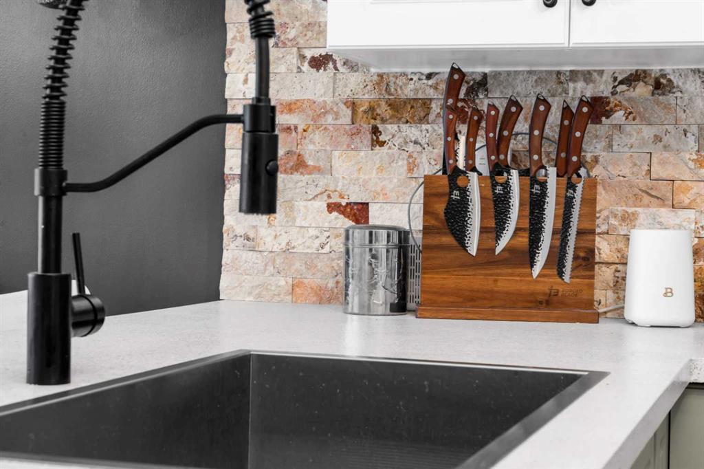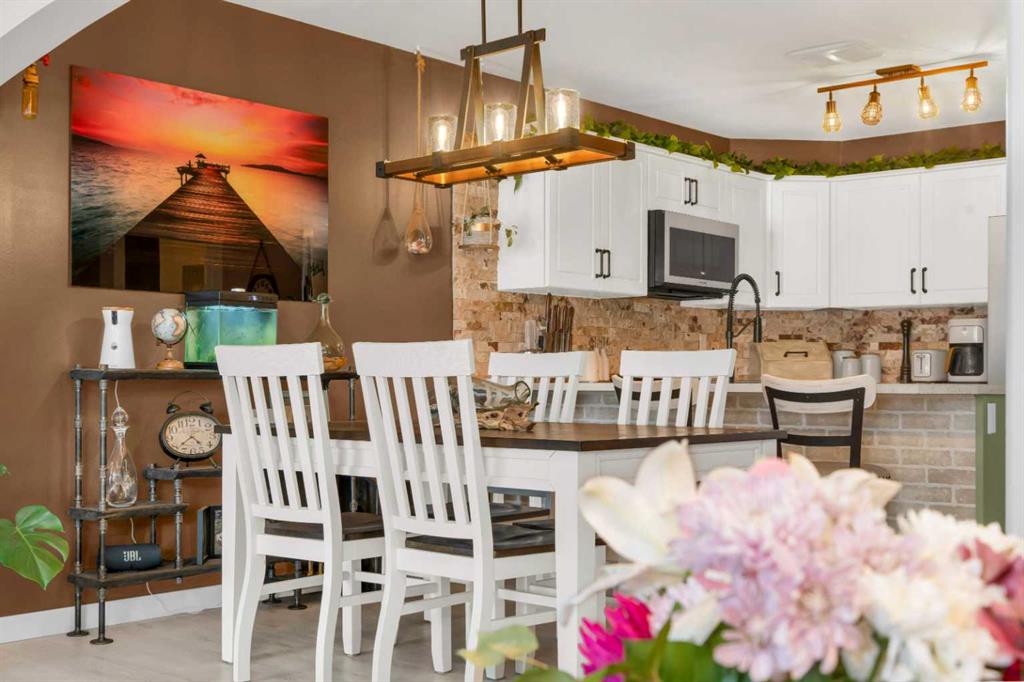 The main floor feels warm and inviting with wide vinyl plank flooring, plenty of natural light, and a great open floor plan. The kitchen is a standout feature with new two-tone cabinetry, brand new samsung appliances, modern light fixtures, and gorgeous finishings, such as stone backsplash, and a stylish breakfast bar. This kitchen has plenty of counter space for everyday living and entertaining.