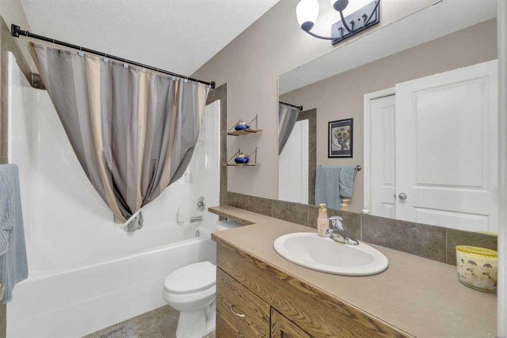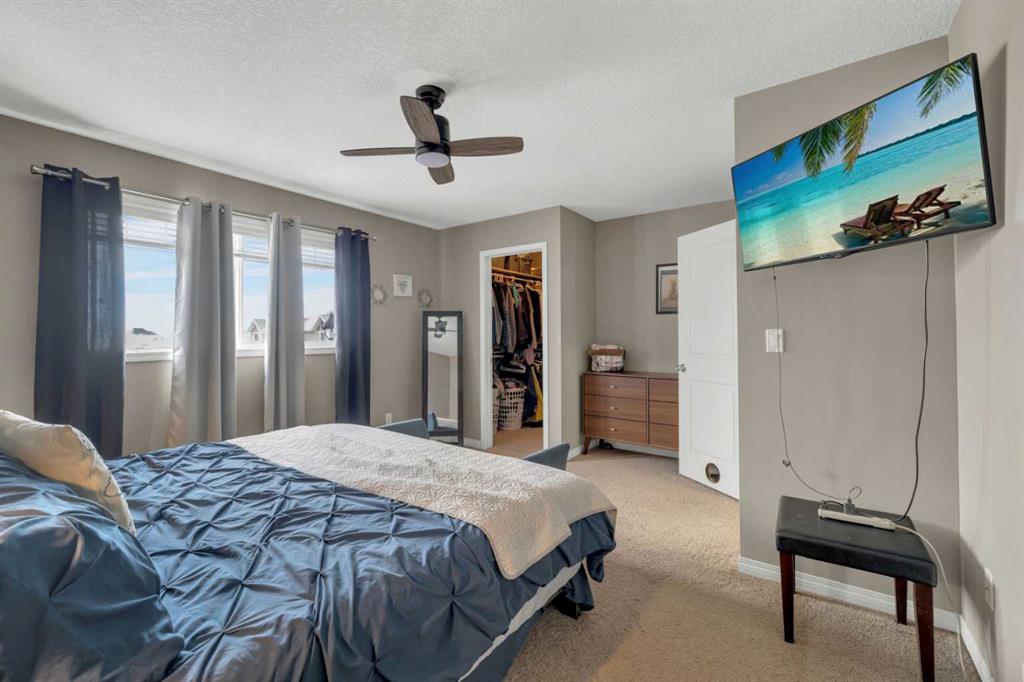 Upstairs, the home offers a large primary bedroom with a walk-in closet, two additional bedrooms, and a full four-piece bathroom, providing plenty of room for a growing family, guests, or a home office.
