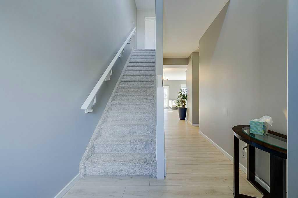 Located in the charming town of Sylvan Lake, this beautiful townhome in Newport Village offers a perfect blend of comfort and convenience. With 1,447 square feet of thoughtfully designed living space, this home features soaring 9-foot ceilings, a combination of durable vinyl plank flooring and cozy carpet, and an inviting open floor plan. The large south-facing rear windows provide an abundance of natural light and picturesque views of the serene treed area. The modern kitchen is equipped with a functional island, wood cabinets, and a pantry, making it ideal for cooking and entertaining. Upstairs, you’ll find three spacious bedrooms, including a generously sized primary suite with a walk-in closet. The convenience of second-floor laundry adds to the home’s appeal. The living room opens onto a back deck with a yard, offering a great space for relaxation. The unfinished basement presents an opportunity to customize to your needs. A one-car attached garage provides added convenience. Enjoy the benefits of professional management, which includes exterior maintenance, lawn care, and snow removal including walk-ways and driveway, allowing you more time to experience the lake and all the activities Sylvan Lake has to offer. This low-maintenance home is perfect for those seeking a balance of modern living and outdoor enjoyment.