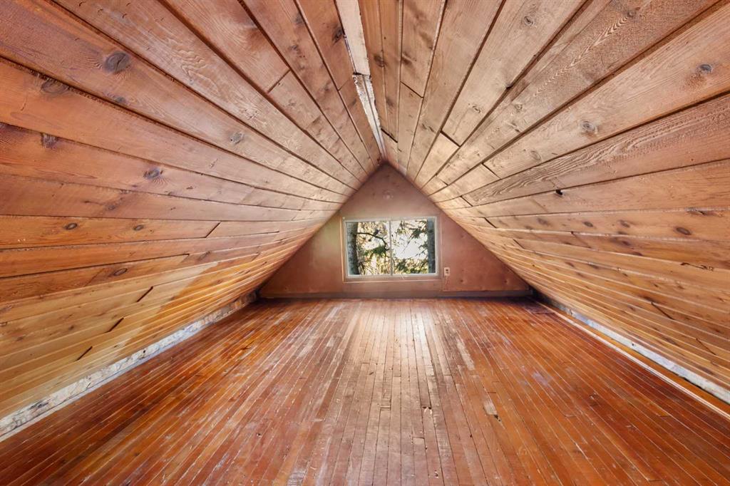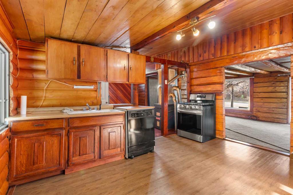 Log cottage in the Palo area of Sylvan Lake on a 50x150 lot. 3 Blocks to the Arena, 4 blocks to the beach and downtown area. Very solid and clean with new carpet in the living room, the rest is all original hardwood. Newer appliances with gas stove and stackable washer and dryer. Loft was used as a bedroom, also the room beside living room was used as a bedroom. Single 24x12 garage and shed.