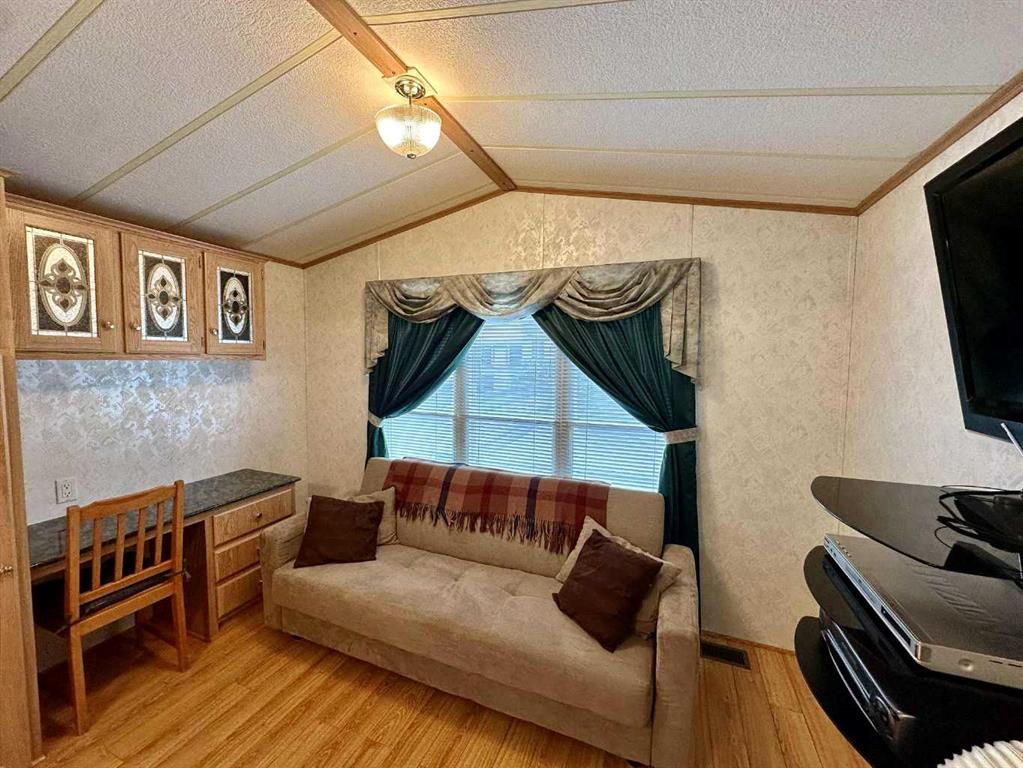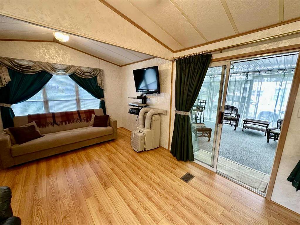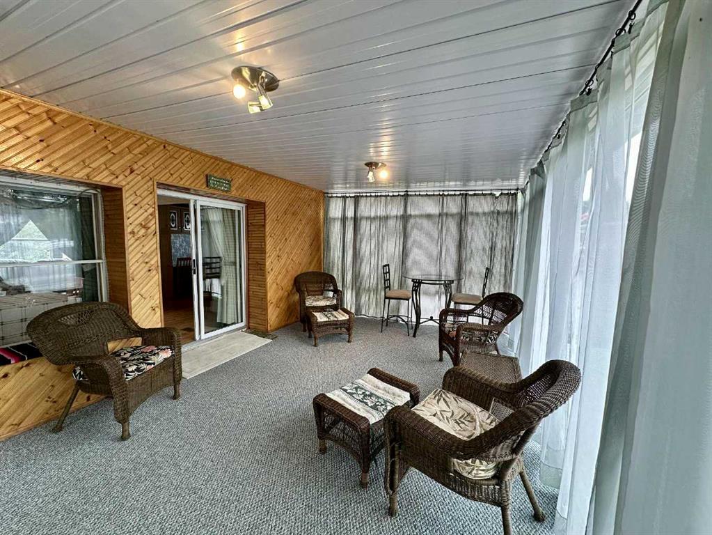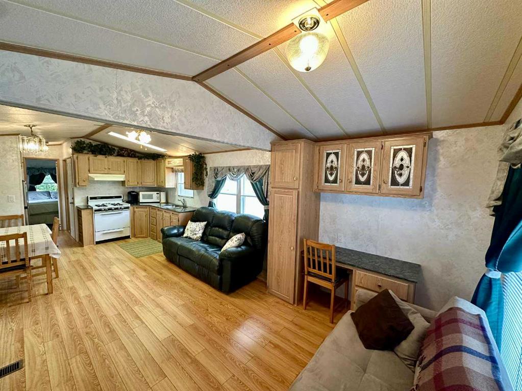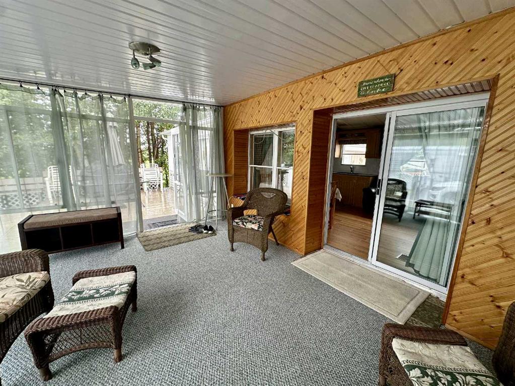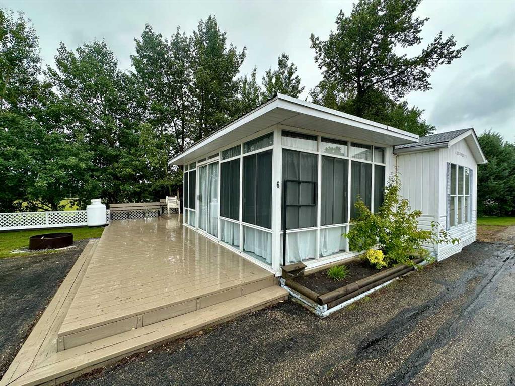 PRICE REDUCED! This is your chance to own an affordable recreational property in Sylvan Lake. The 41’ x 66’ titled lot includes a one bedroom + den 40’ x 12’ General Coach Canada Algonquin Park Model Trailer with beautiful oak package, large 4-pc bath, full-sized fridge & 4 burner stove; completely furnished. Attached is a 12’ x 18’ aluminum sunroom for additional living and sleeping space. Large side & rear deck, 8’ x 10’ garden shed, firepit and 3-car paved driveway. Condo fees of $3,300/year include management, reserve fund contribution, power, water, sewer, garbage & lawn mowing. Enjoy the beautiful outdoor heated pool & hot tub, playground, pickleball/basketball court, shower facilities & coin laundry. Fully equipped clubhouse for family functions and social events. Activities for families (ex. Halloween in August, Canada Day) and adults (ex. cards, craft nights). Includes one RV/boat storage space. Pets welcome, fenced dog park on site. Open from April 1 to October 31 (weather permitting), Points West Resort is a gated three-season community on the outskirts of Sylvan Lake; a short walk to the golf course, lake and amenities, but away from the bustle of downtown.