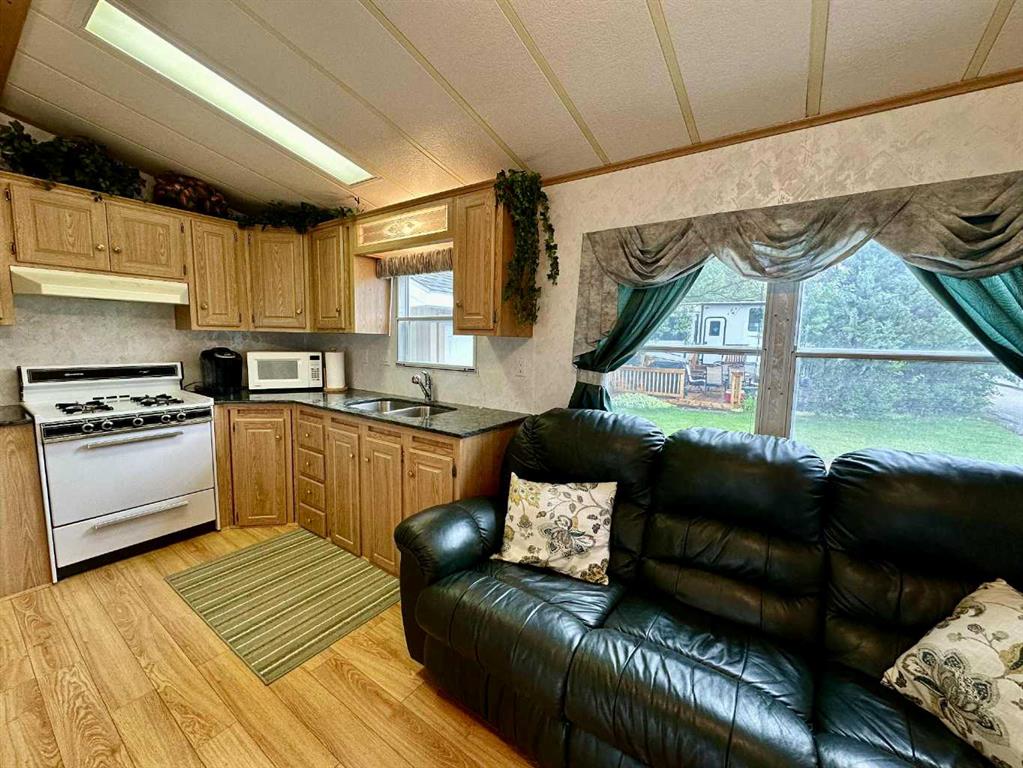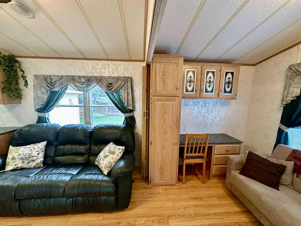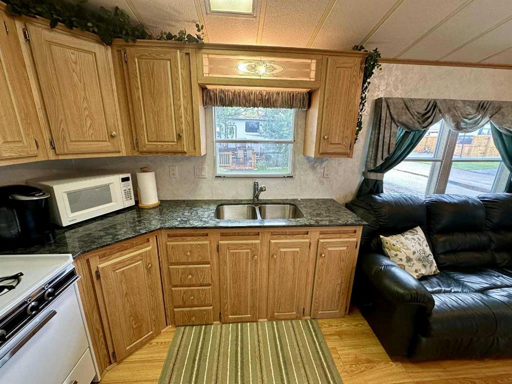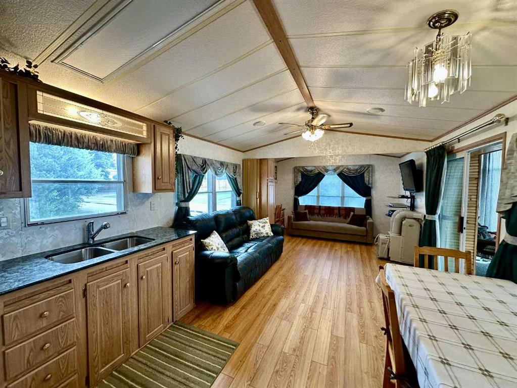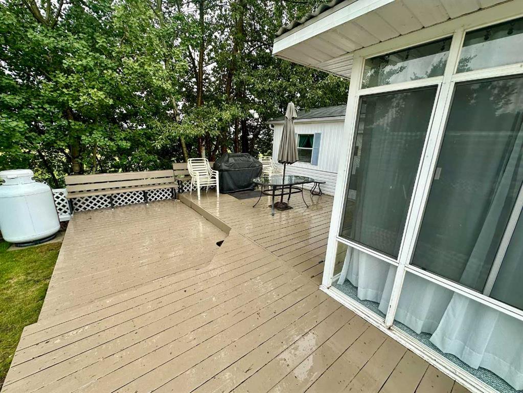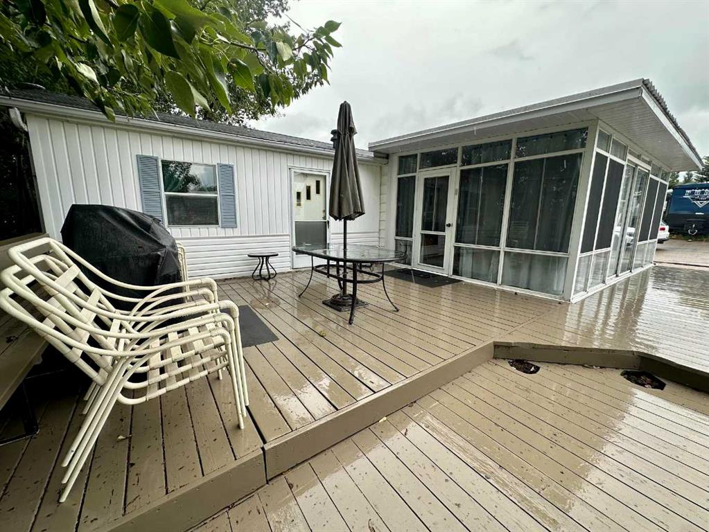 PRICE REDUCED! This is your chance to own an affordable recreational property in Sylvan Lake. The 41’ x 66’ titled lot includes a one bedroom + den 40’ x 12’ General Coach Canada Algonquin Park Model Trailer with beautiful oak package, large 4-pc bath, full-sized fridge & 4 burner stove; completely furnished. Attached is a 12’ x 18’ aluminum sunroom for additional living and sleeping space. Large side & rear deck, 8’ x 10’ garden shed, firepit and 3-car paved driveway. Condo fees of $3,300/year include management, reserve fund contribution, power, water, sewer, garbage & lawn mowing. Enjoy the beautiful outdoor heated pool & hot tub, playground, pickleball/basketball court, shower facilities & coin laundry. Fully equipped clubhouse for family functions and social events. Activities for families (ex. Halloween in August, Canada Day) and adults (ex. cards, craft nights). Includes one RV/boat storage space. Pets welcome, fenced dog park on site. Open from April 1 to October 31 (weather permitting), Points West Resort is a gated three-season community on the outskirts of Sylvan Lake; a short walk to the golf course, lake and amenities, but away from the bustle of downtown.