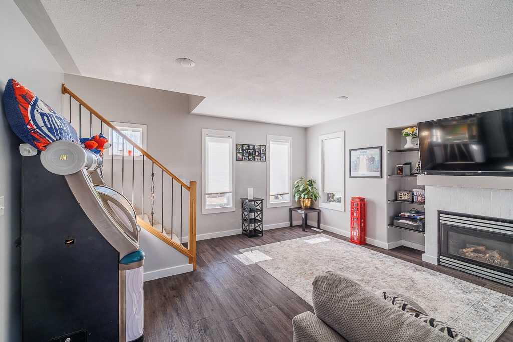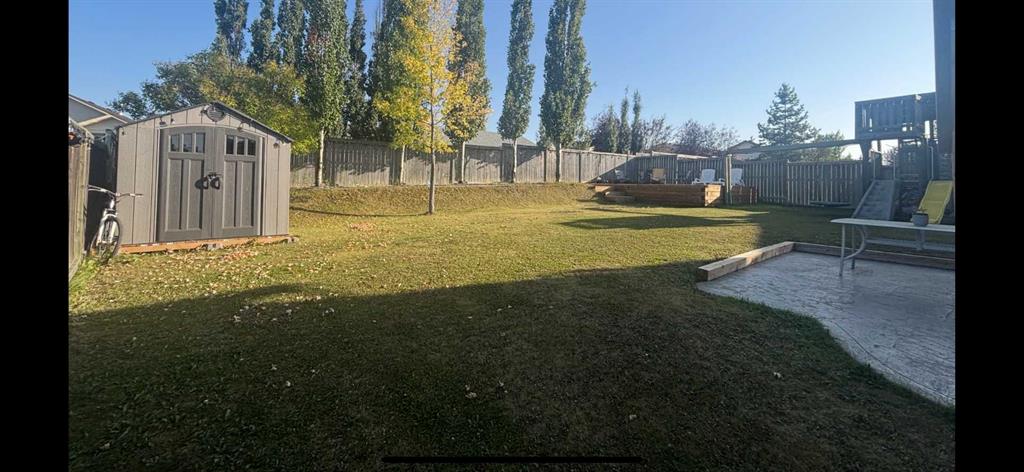 Fine Family Home in Fox Run with 5 bedrooms and 4 baths! This home on a nice Crescent is sure to please! Enjoy a beverage on the large front veranda or invite your family and friends to a summertime BBQ in the huge back yard which is very private! Step inside and you are greeted with a cozy living room with a gas fireplace. Great Kitchen with spacious cabinets, corner pantry, eating bar and a patio door to a small deck perfect for the BBQ. Main floor laundry and a 2 piece bath right off the garage entry is very functional! Loads of built in shelving in the garage for all your storage needs. Upstairs you will find a large primary bedroom with a 4 pc ensuite, 2 more nice sized bedrooms and another 4 pc bath. All bathrooms are tiled with underfloor heat! Enjoy the "chill" of the central air conditioning on those hot summer days! The family room down is perfect for entertaining and you will also find 2 more bedrooms and another bath! This plumber built home also features on demand hot water system, high efficiency furnace, and in floor heat in the basement. Upgrades include a newer fridge and stove, hot water system and the shingles were done about 3 years ago. A few extras to off the list with 2 sheds, parking pad, play structure, trampoline and a central vac.