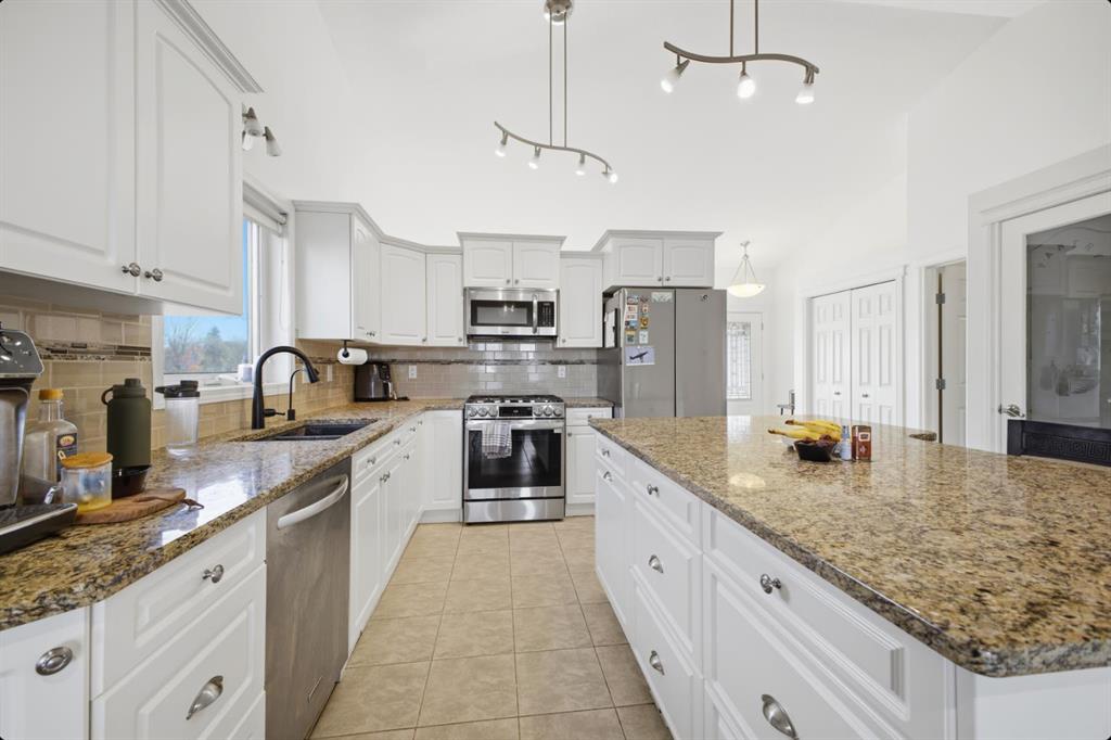 This 5-bedroom, 3-bathroom bungalow is bright, modern, and ready for quick possession. The main floor features vaulted ceilings, large windows, a cozy gas fireplace, and a gorgeous kitchen with granite countertops, island, gas stove, and pantry. Convenient main floor laundry with newer washer/dryer and sink, plus 3 bedrooms including a primary suite with walk-in closet and private ensuite. Located in a highly desired area of Fox Run and close to the school, you can even watch the kids walk to class!