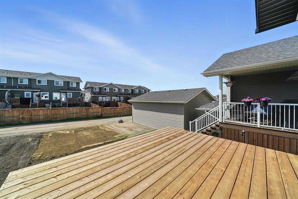 Ryders Ridge is one of the most sought after Sylvan Lake neighbourhoods as it offers parks, walking paths, an elementary school, restaurants, grocery stores and several other amenities. From the moment you arrive you'll notice the great curb appeal on this classic white home with black accents. The layout of this spacious 1231 sq foot home is perfect as it offers an open floor plan, with the kitchen looking onto the great room, ideal for enjoying time with family and friends.The dining area leads out to the deck and the sunny West facing backyard. This family friendly home has 3 bedrooms on the main level, including the primary bedroom with an ensuite. The basement is open for your future development needs.  This home comes complete with 6 stainless steel appliances: fridge, stove, dishwasher, microwave oven, washer and dryer.  This quality built home has triple pane windows and doors, high efficiency furnace, high efficiency hot water tank and roughed in floor heating. Pricing is available for basement development and or garage. Move in  and enjoy the Sylvan Lake lifestyle!