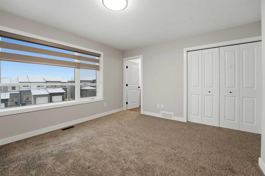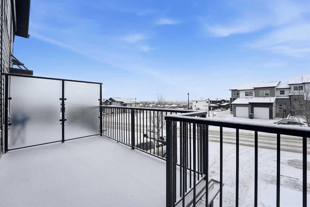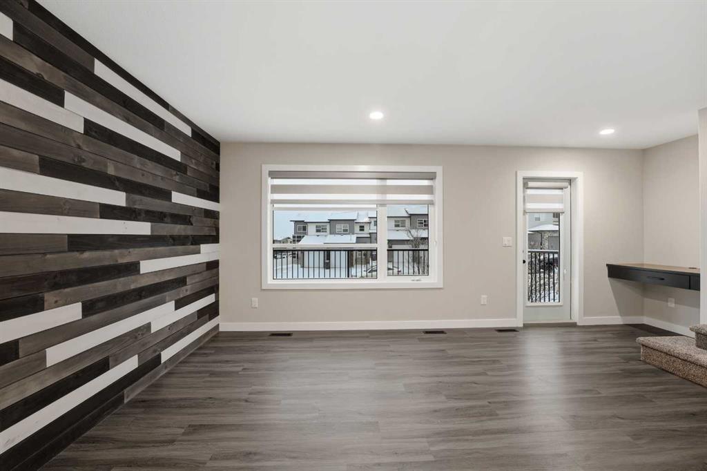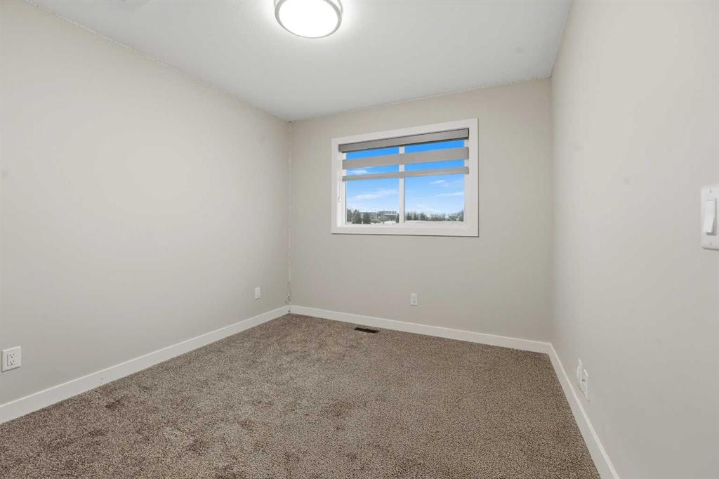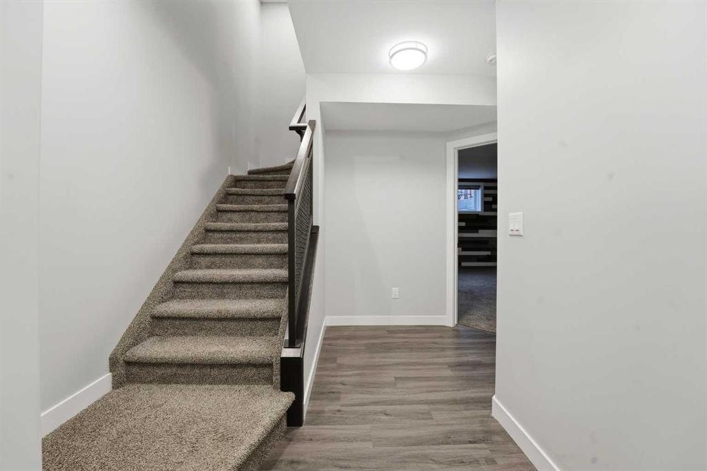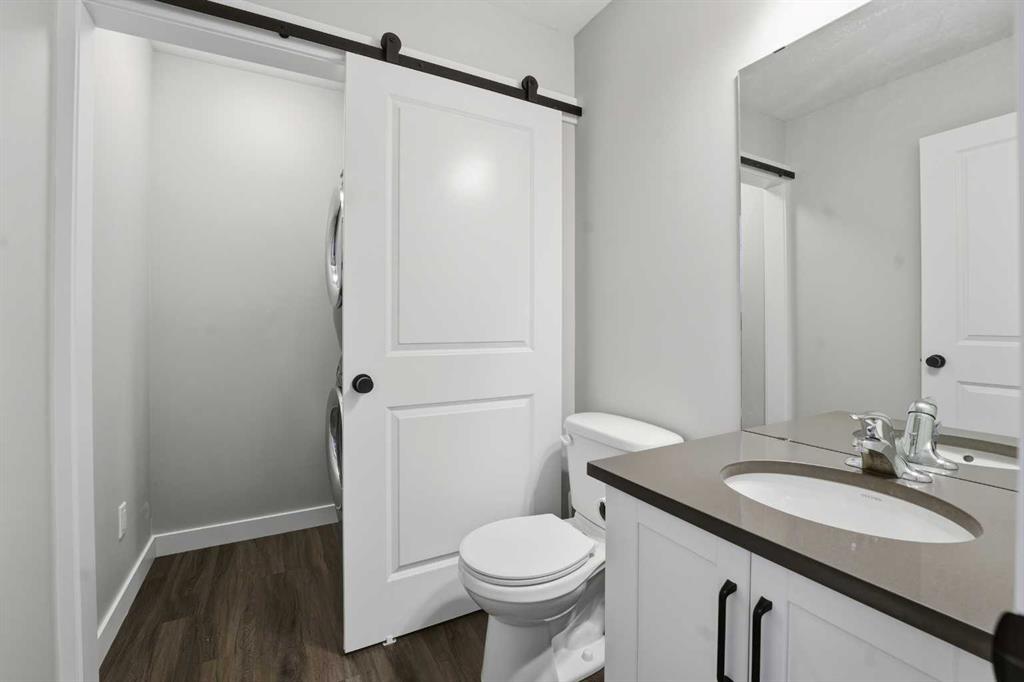 You’ll love the open-concept layout of the main floor that features a modern kitchen with stainless steel appliances, a large island, quartz countertops, tile backsplash and gorgeous white cabinetry with plenty of storage. The bright family room opens onto a zero-maintenance balcony with beautiful Sylvan Lake views. A convenient 2-pc bathroom with in-suite laundry is tucked behind a barn door. Off the dining room, patio doors lead to the fully fenced and landscaped yard that backs onto open fields. Ideal for privacy and those stunning Alberta sunsets.