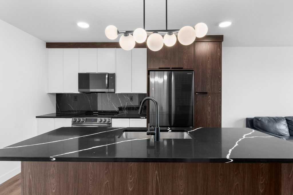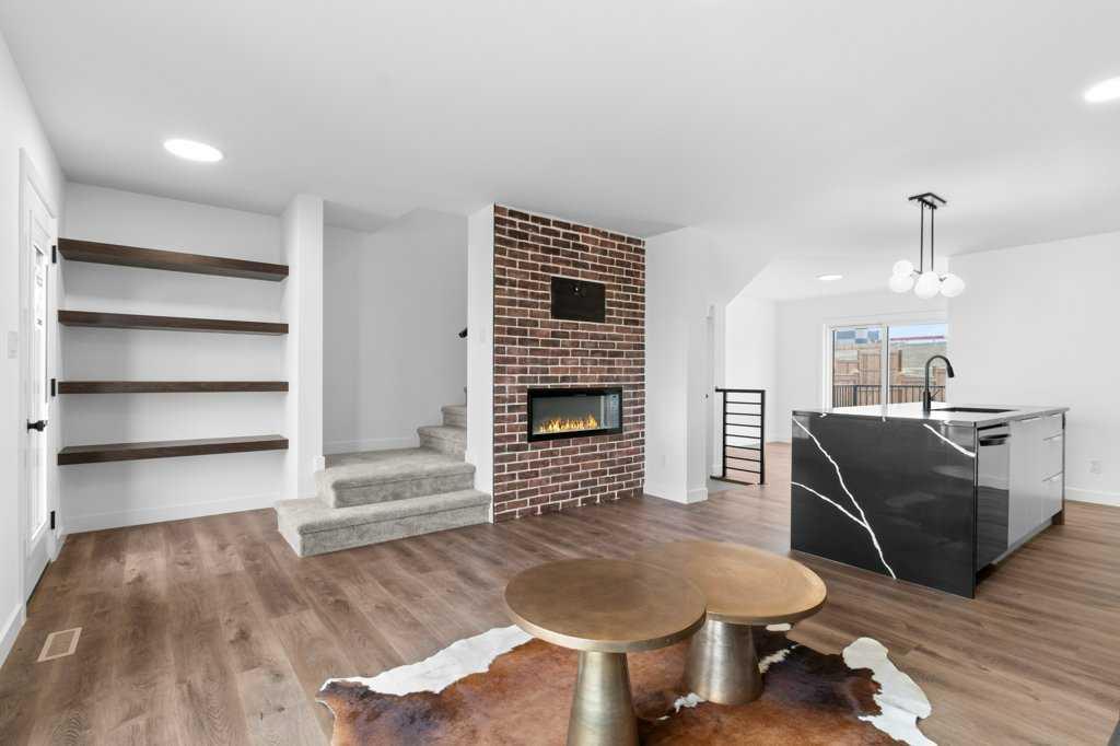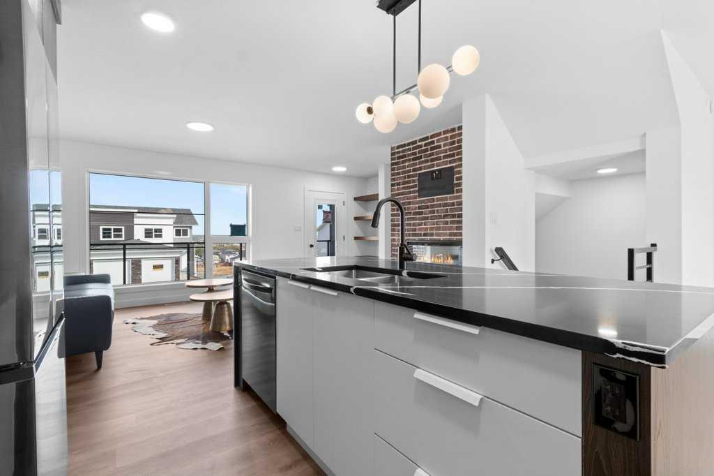 Nestled on a peak overlooking the shores of Sylvan Lake, this home presents a unique opportunity for professionals and families seeking an idyllic lakeside lifestyle. This exquisite block of units boasts well-appointed bedrooms, complimented by two full bathrooms and a convenient half bath/laundry room on main level. Upstairs the master bedroom is a sanctuary of relaxation with a modern tiled shower enclosed by glass doors. The contemporary open floor plan invites you to a realm of sophistication featuring a spacious kitchen complete with large island, design inspired cabinetry and sleek quartz countertops. The living area, illuminated by large windows provides lake views and seamless access to a front deck constructed with a durable dura-deck decking, chic brick feature walls and elegant glass railing. Experience cozy evenings by the electric fireplace, framed by a stylish brick feature. The dining rooms sliding glass doors open to a sizeable back deck leading to an expansive backyard with a paved alley. The tandem garage offers ample parking for 2 vehicles.