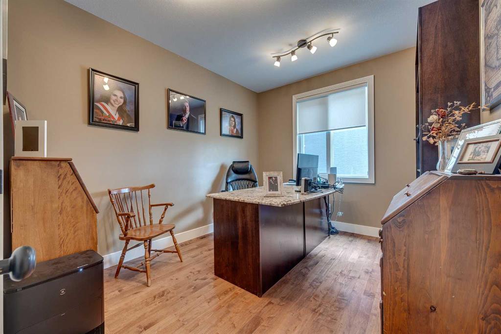 The main level is a haven for culinary enthusiasts, boasting a chef's kitchen equipped with top-of-the-line appliances. The formal dining and living rooms are ideal for entertaining guests in style, while the cozy family room offers a great space for everyday living. Additionally, there is a main floor office for work or managing the home. Practical amenities abound, with a large back entryway featuring a locker room, laundry room, and a convenient 2-piece bathroom.
