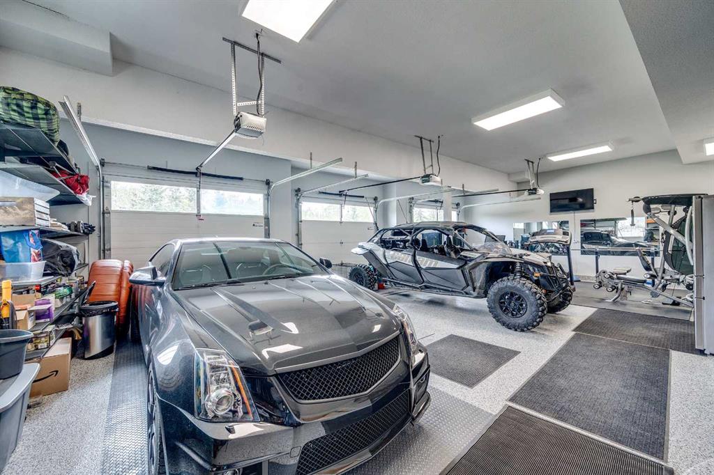 Garages and additional spaces are plentiful. The triple attached garage offers ample space for everyday parking. The detached shop is a massive 46 x 36 structure accommodating vehicles, boats or all your toys, and includes a recently added shop hoist. The shop also features a bonus mezzanine with a full kitchen, 4-piece bath, and a balcony overlooking the lake. There are options to convert the upper part of the detached shop into additional living space with board-in bedrooms, providing even more versatility. An additional 2-piece bathroom and a stackable laundry unit in the main garage area adds even more convenience.