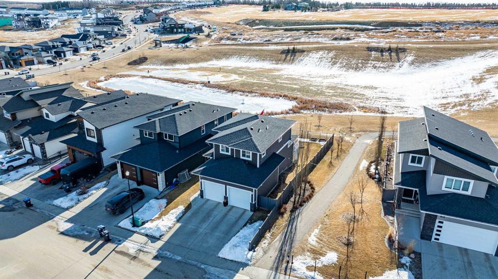 Rarely does a home combine panoramic green space views, a walkout basement, and a family-focused layout quite like this stunning residence in The Vista’s. Perfectly positioned along walking trails, a pond which turns into a skating rink and a winter toboggan hill, this home offers a lifestyle where nature, luxury, and everyday family life meet effortlessly. This beautifully maintained 4-bedroom, 3.5-bathroom two-storey home features a bright open-concept main floor with a clean, modern aesthetic and neutral colour palette that will suit any style. The spacious living room is anchored by a cozy gas fireplace. Large windows in the living and dining areas flood the home with natural light while showcasing beautiful views of the vast green space behind the property. The thoughtfully designed kitchen and dining area flow seamlessly to create the ideal space for both entertaining and everyday living. Upstairs you’ll find three well-appointed bedrooms, including a spacious primary retreat featuring his and hers walk-in closets and a private ensuite, a 4 piece guest bathroom and laundry. Every detail of this home has been designed with storage and practicality in mind. The fully developed walkout basement adds incredible additional living space with a large family room, a generous fourth bedroom, and multiple oversized storage closets—perfect for growing families. Additional highlights include a walk-in closet from the garage, ideal for coats, boots, and everyday organization. Step outside and enjoy direct access to the green space, walking trails, and a popular toboggan hill, creating year-round outdoor enjoyment right in your backyard. Located in the highly desirable Vista’s community of Sylvan Lake, this home is close to schools, parks, shopping, and extensive walking paths, making it the perfect place for families to grow and thrive. Modern design, incredible storage, walkout basement, upstairs laundry, and a prime location backing onto nature—this is a home that invokes lifestyle.
