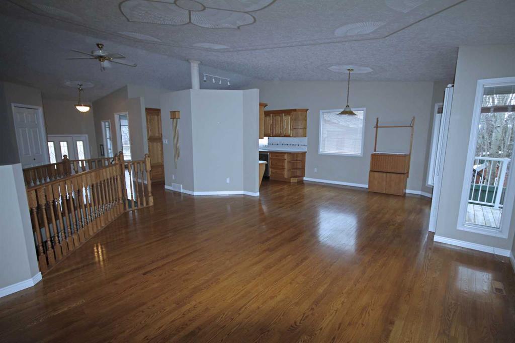 TRIPLE GARAGE on Large Bungalow (1725 sf per floor) backing onto quiet GREEN SPACE with trilling daily wildlife viewings. Location is one of the best in Sylvan Lake with walking and bicycle access to the Lake, Restaurants, Golf Course etc. without being in the busy tourist district. Lots of room with 4 bedrooms plus office/den, huge family room and beautiful views in all directions. Unique driveway leading to the TRIPLE CAR GARAGE will accommodate many vehicles. Newer shingles, furnace, hot water heater and boiler (for basement and garage floor heat). Hardwood flooring is in excellent condition. Other flooring and light fixture updates will make this house your home.
