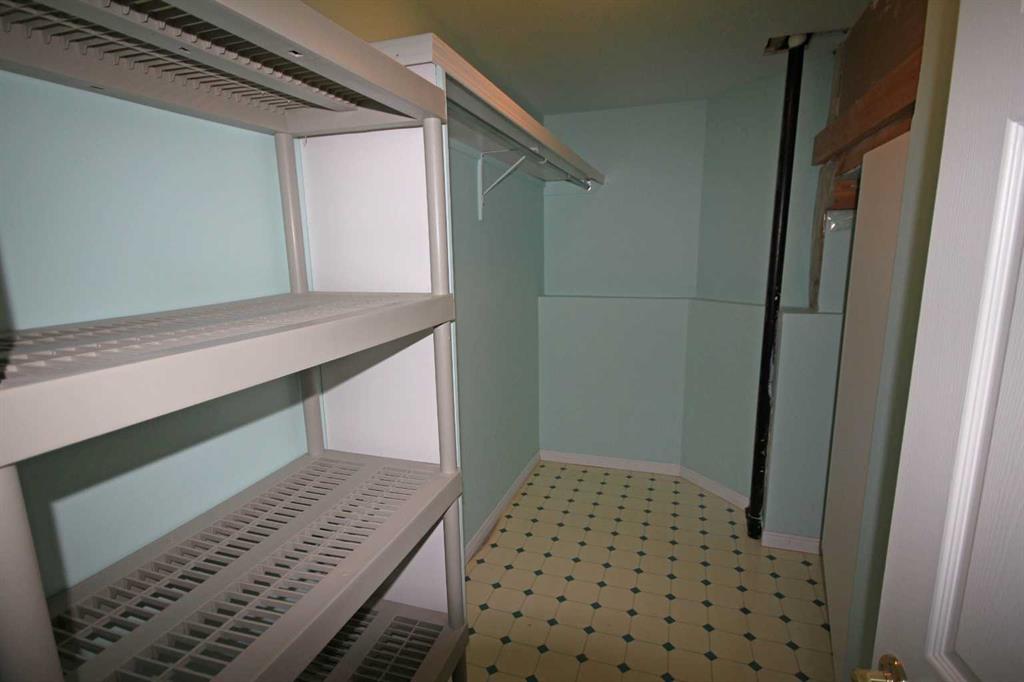 Extra fridge in basement, shelving units, desk and non functioning Hot Tub. |